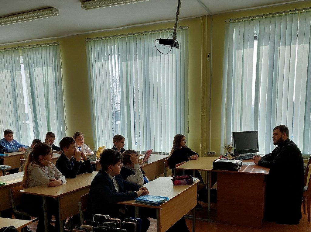 13 февраля, в преддверии двунадесятого праздника Сретения Господня, клирик прихода храма святого благоверного князя Александра Невского в г.Рогачеве иерей Александр Ткаченко встретился с учащимися ГУО «Средняя школа №3 г.Рогачева».