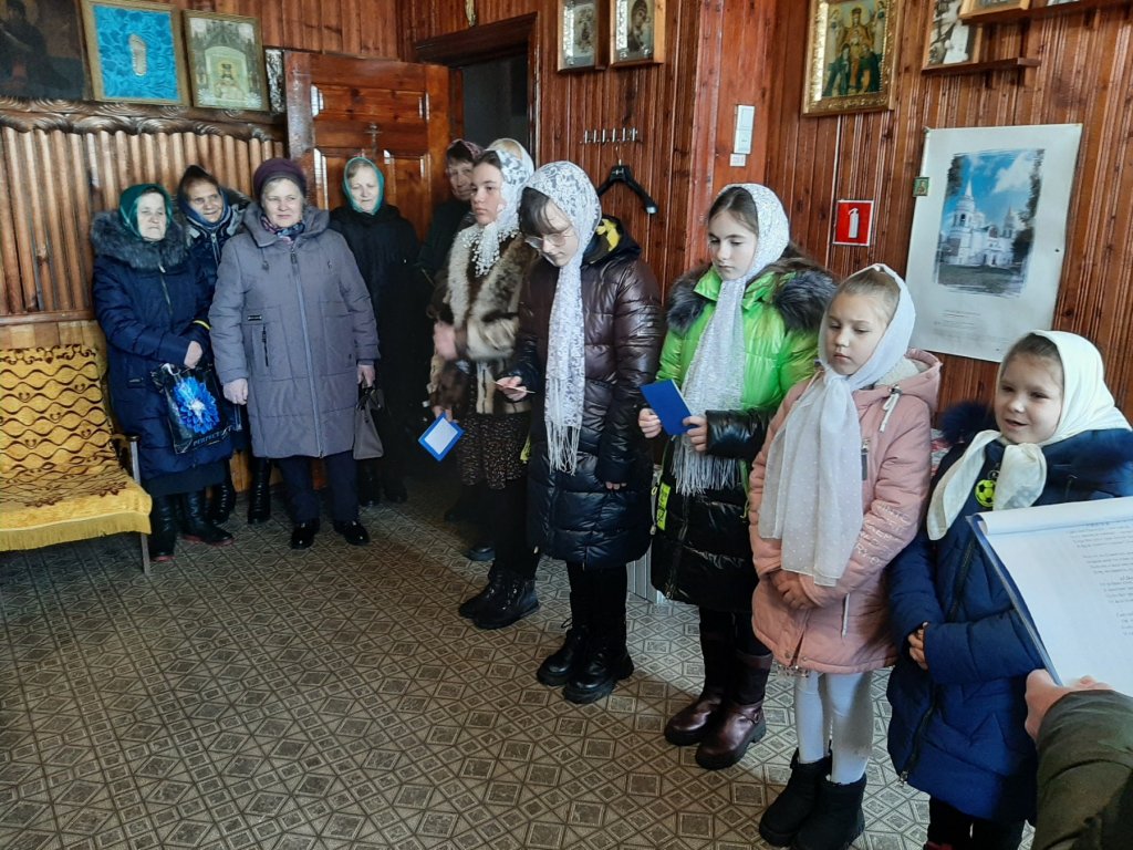 В рамках благотворительной акции "От сердца к сердцу", приуроченной Дню православной молодёжи и празднованию Сретения Господня, учащиеся воскресной школы прихода храма Покрова Пресвятой Богородицы в аг.Довск в стихотворной форме поздравили с праздником пожилых прихожан. От всей души дети желали убеленным сединами бабушкам добра и долгих лет жизни, мира и благополучия.