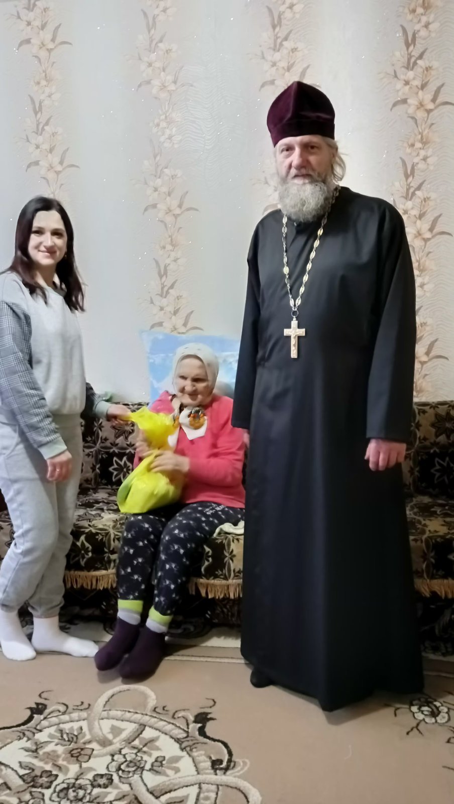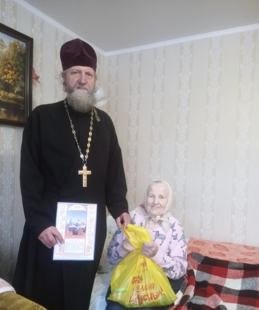 Пожелав мира, добра и благополучия, настоятель храма протоиерей Владимир Янчесов с молодыми помощниками вручили на дому подарки самым старшим прихожанам. Порадовали их вниманием и доброй беседой.