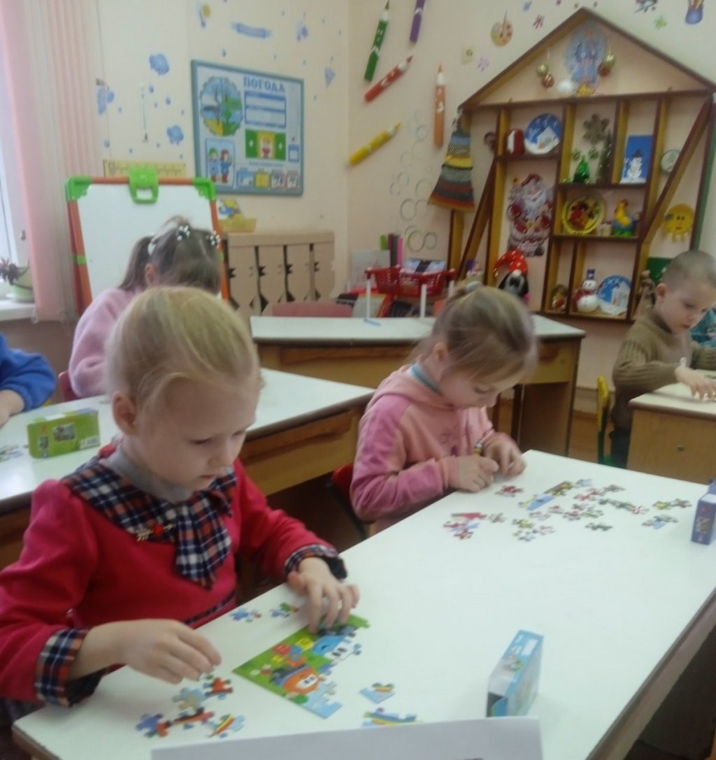 Ребята с увлечением собирали мозаику, подаренную от прихода храма, а затем пригласили батюшку на зимнюю прогулку: ведь настало чудесное время для лепки снежков и самых сказочных фигурок.