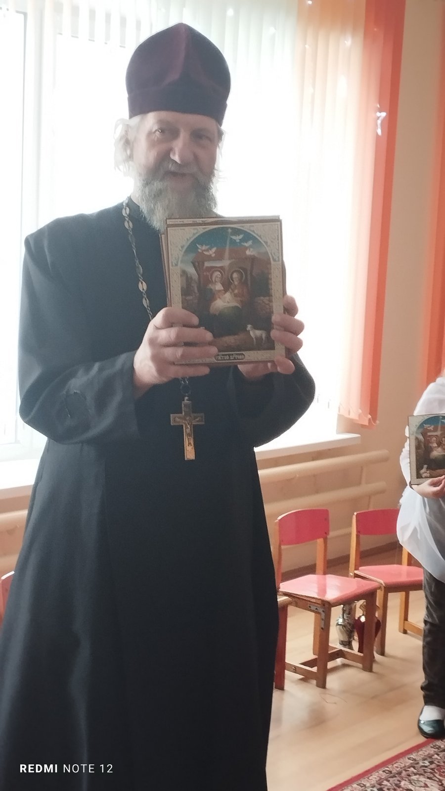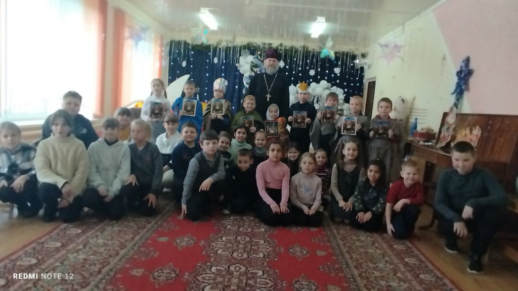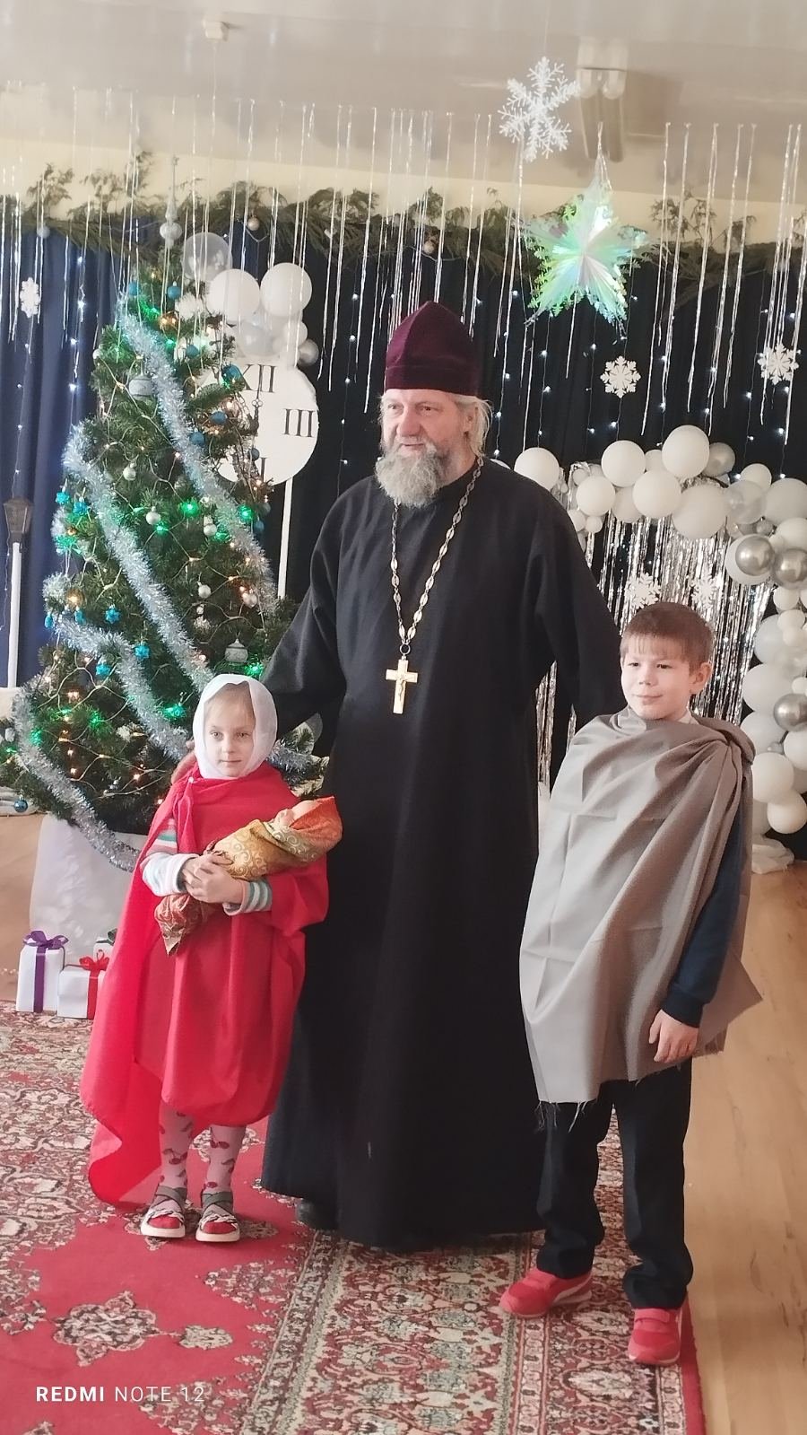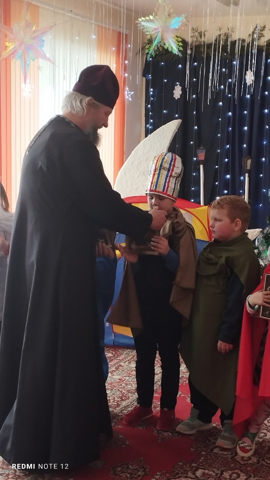 Дети подготовились, разучили с воспитателями рождественские стихи и поздравили прихожан со святыми днями. Настоятель храма протоиерей Виталий Левчук угостил ребят сладостями, рассказал, как нужно себя вести в храме, и познакомил с его устройством, с иконой Рождества Христова.