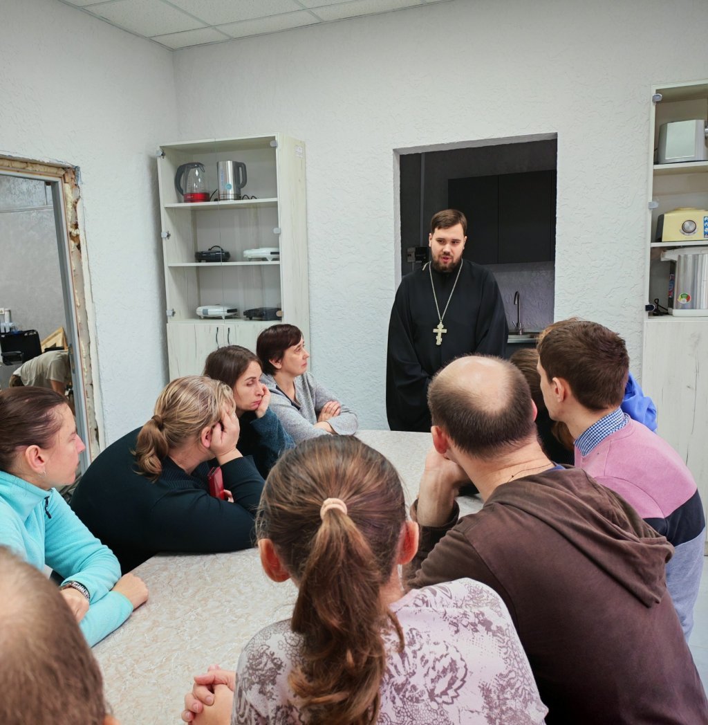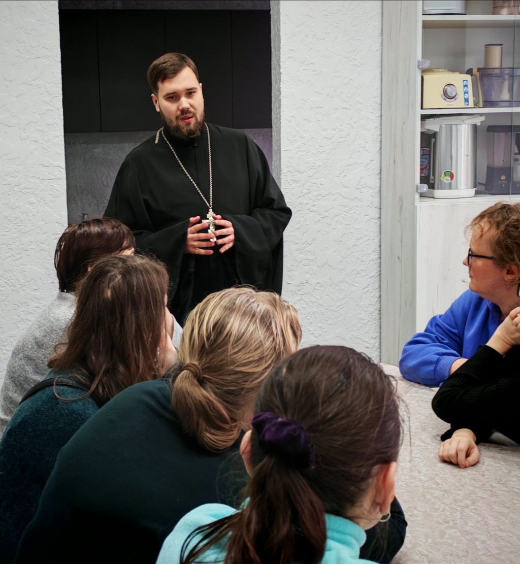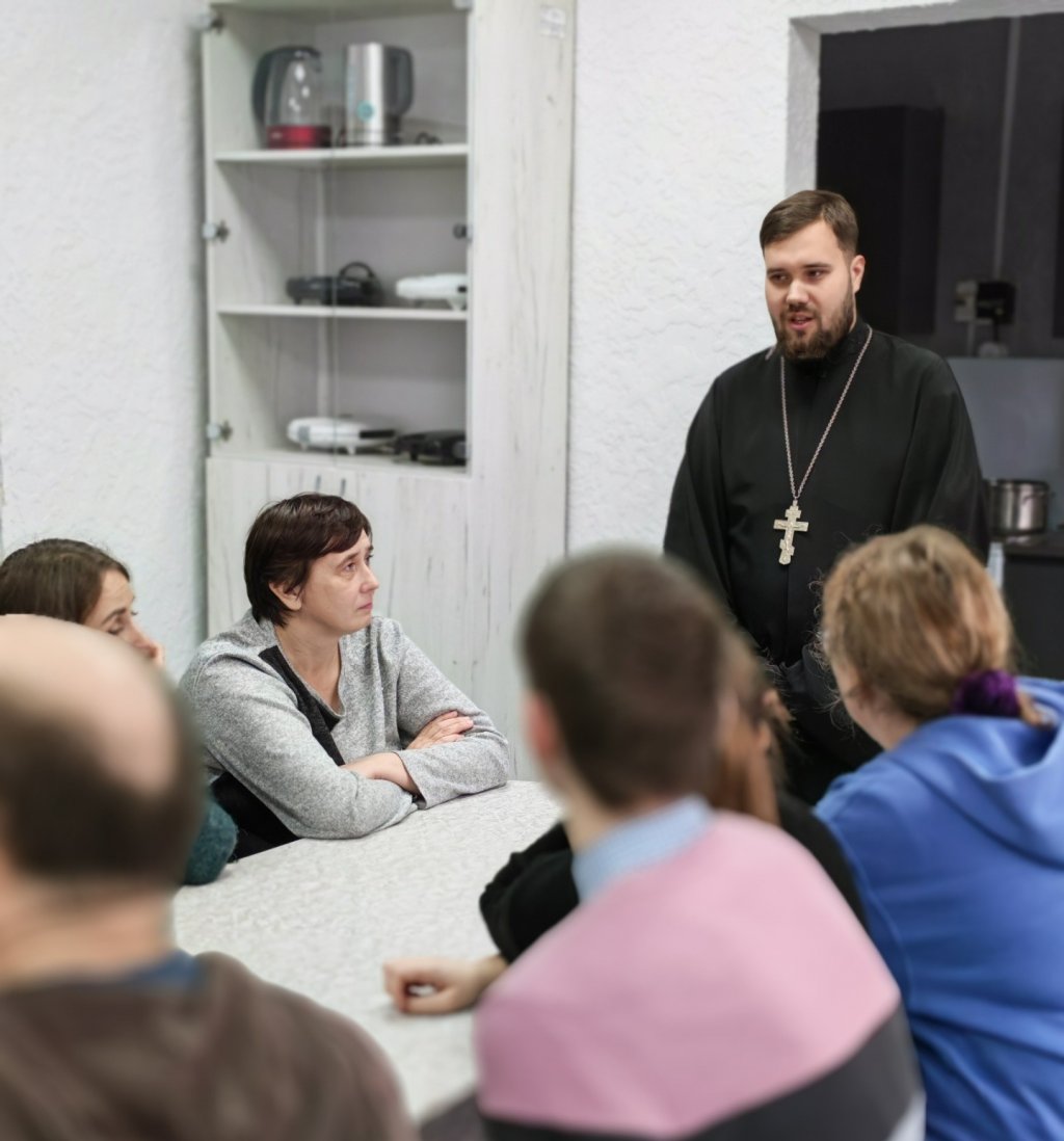 Священник доброжелательно рассказал присутствующим о христианском мировоззрении и иерархии жизненных ценностей в Православии, о том, как важно призывать помощь Божию в борьбе с грехом.