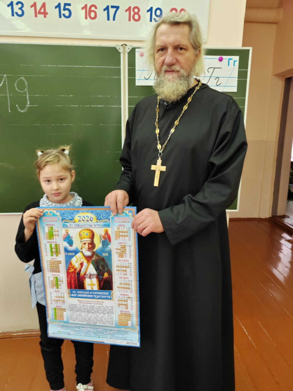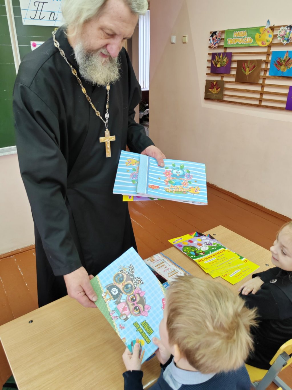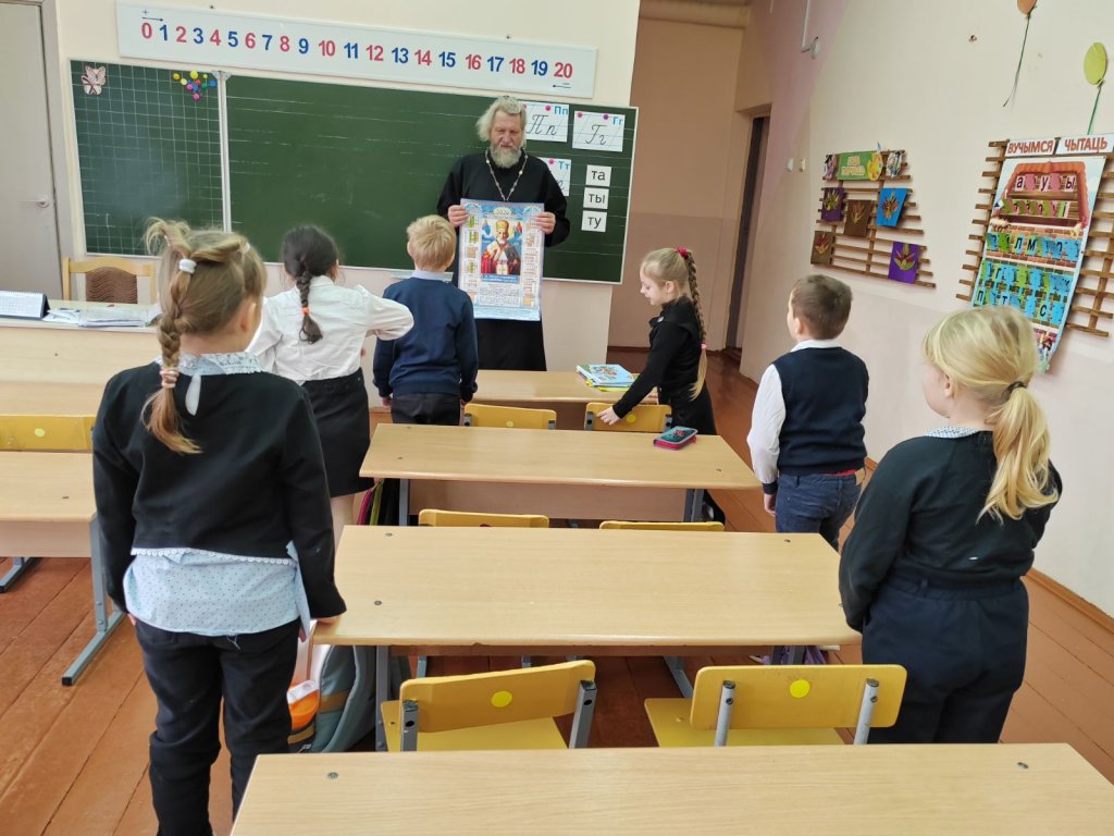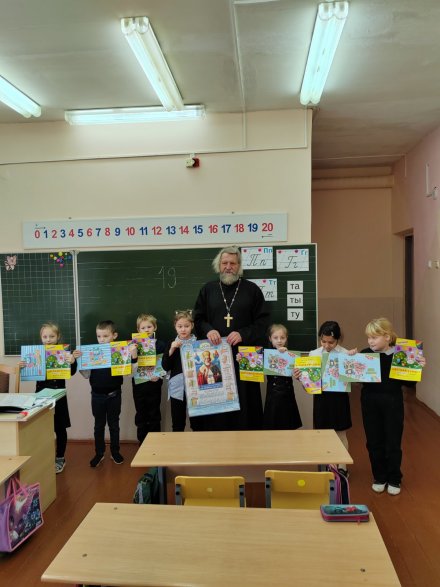 Самого внимательного слушателя – Терешкову Арину – выявила православная викторина. Отец Владимир подарил ей церковный календарь со св.Николаем чудотворцем на 2026 год. Все первоклассники с радостью принимали в подарок альбомы для рисования и наборы цветной бумаги.