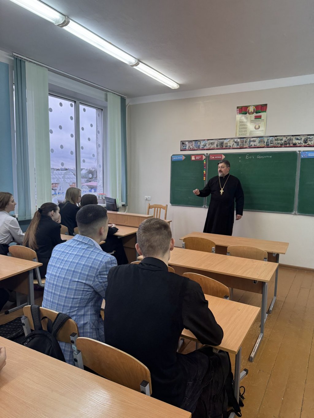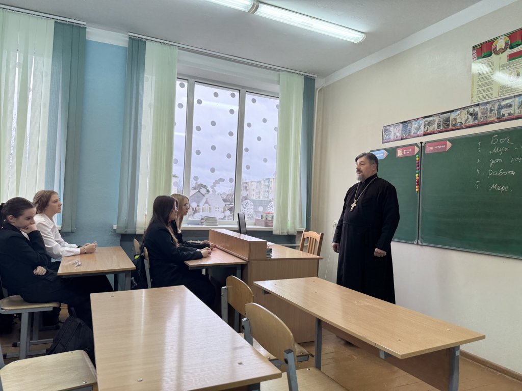 12 декабря настоятель прихода храма святого Архангела Михаила в аг.Тихиничи протоиерей Николай Степанов стал гостем классного часа у одиннадцатиклассников ГУО «Средняя школа №4 г.Рогачёва имени В.С.Величко».