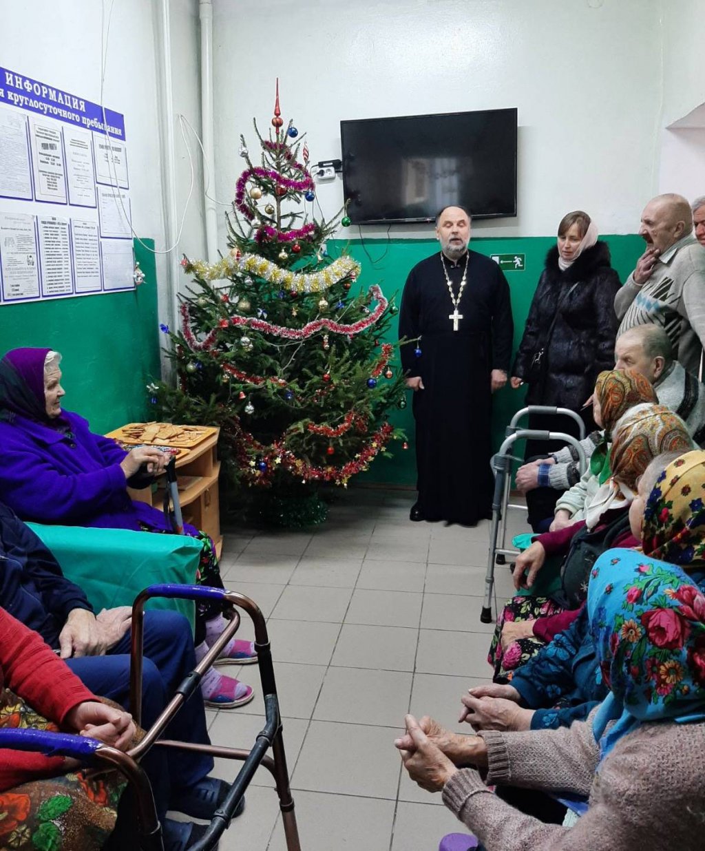 В рамках благотворительной акции «От всей души» настоятель храма святого пророка Илии в аг.Журавичи протоиерей Виталий Левчук вместе с прихожанами посетил местное отделение круглосуточного пребывания для граждан пожилого возраста и инвалидов. Гости исполнили тропарь праздника, поделились праздничным настроением с подопечными и угостили их сладостями.