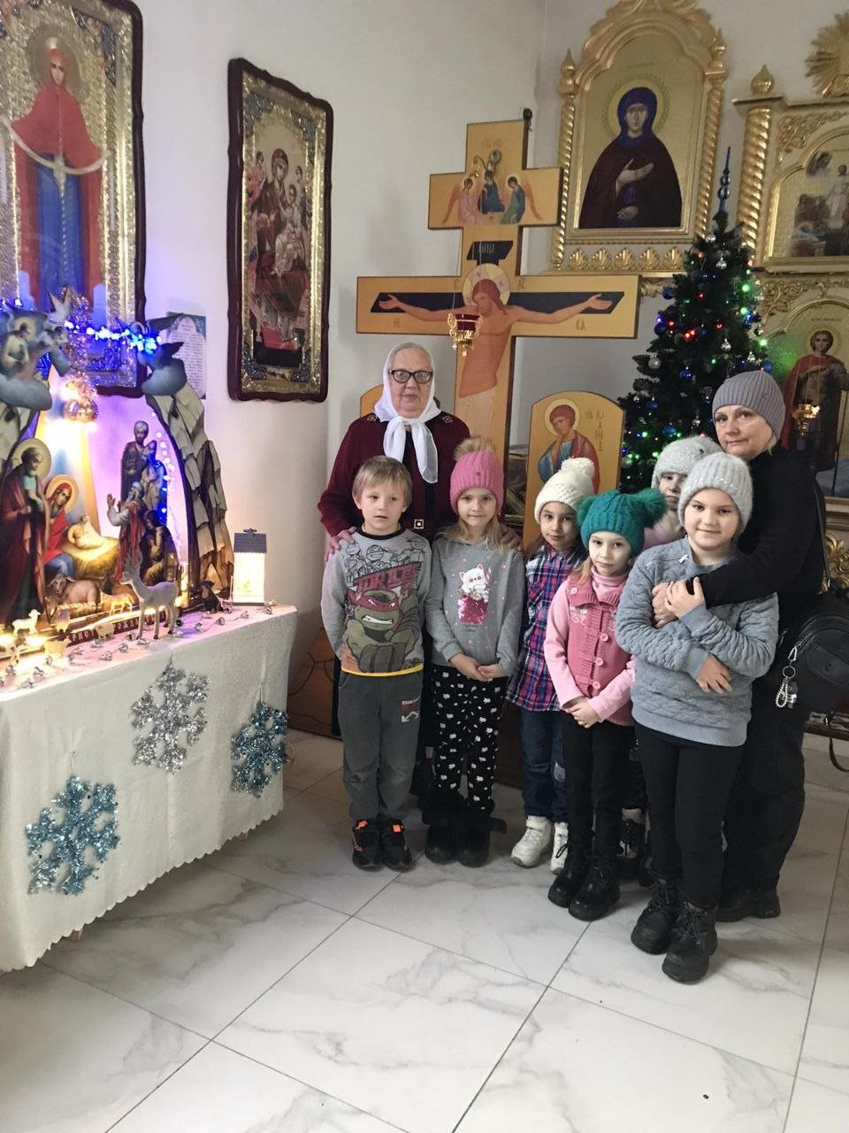 Батюшка рассказал детям историю Рождества нашего Спасителя, а ребята вручили им подарки и с радостью пообщались.