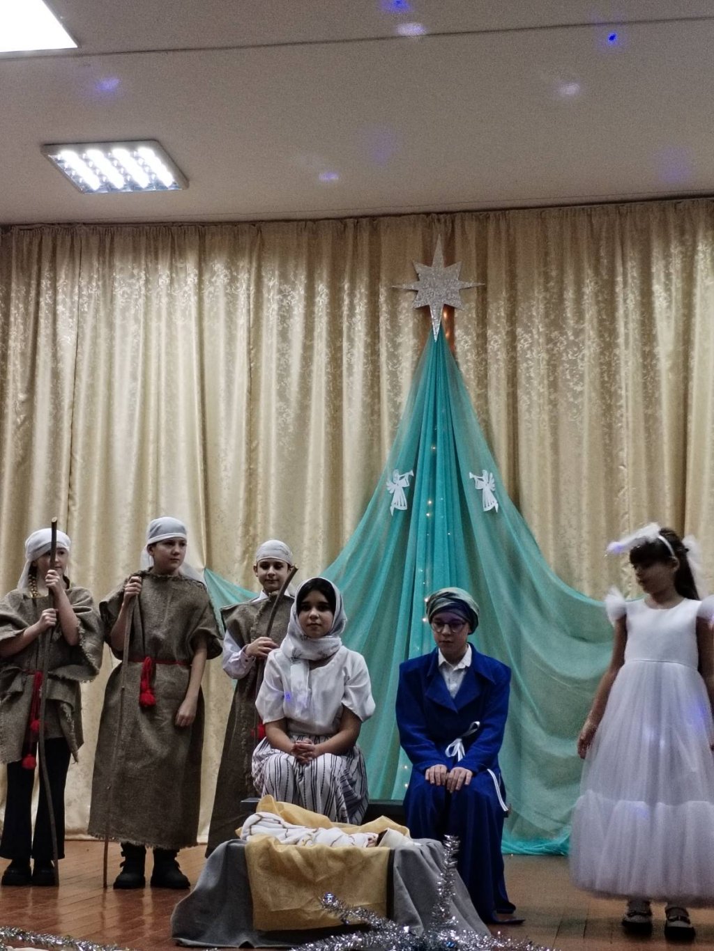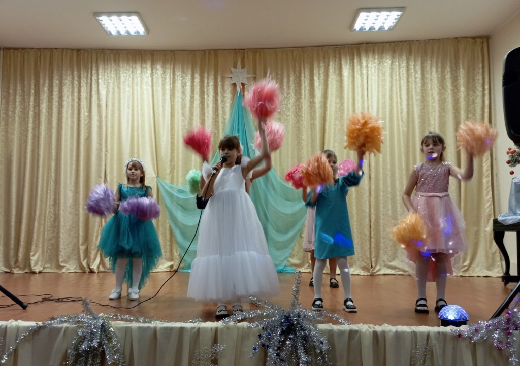 В исполнении детей прозвучали рождественские стихи и песни. Инсценировка "Рождественская ночь" познакомила зрителей с историей рождения Иисуса Христа.