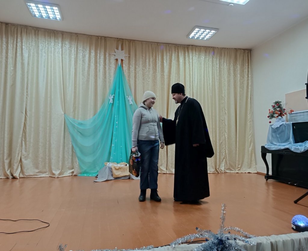 Настоятель прихода храма протоиерей Владимир Руденок поздравил прихожан с праздником Рождества Христова и всем ребятам вручил подарки.