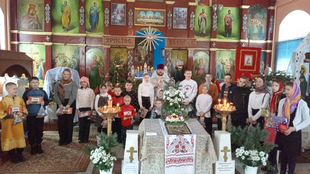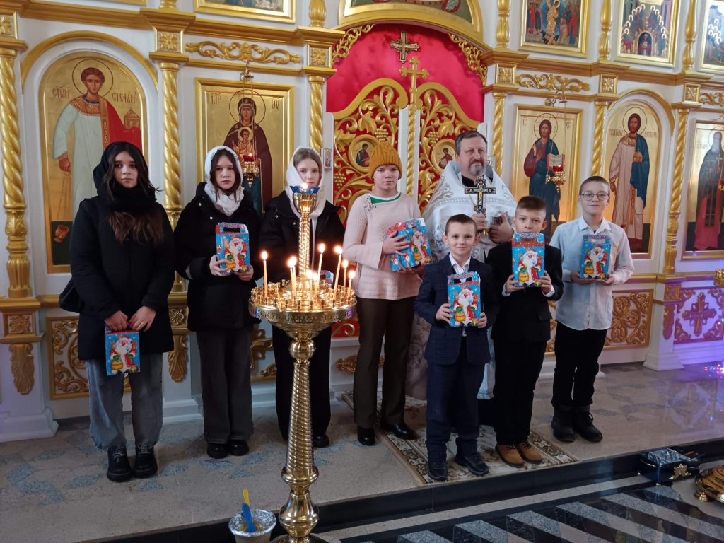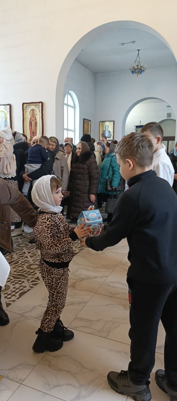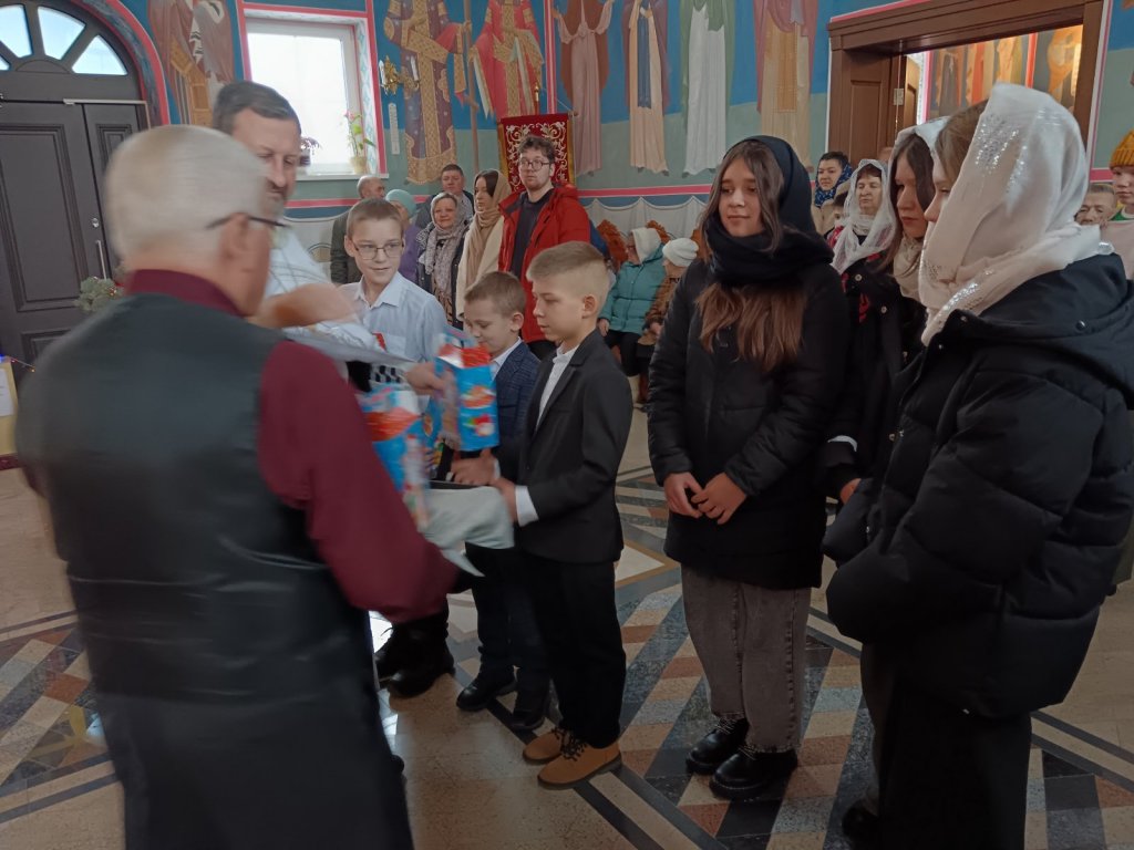 Настоятель прихода протоиерей Виталий Левчук пожелал всем мира, добра и духовной радости и вручил ребятам сладкие угощения.