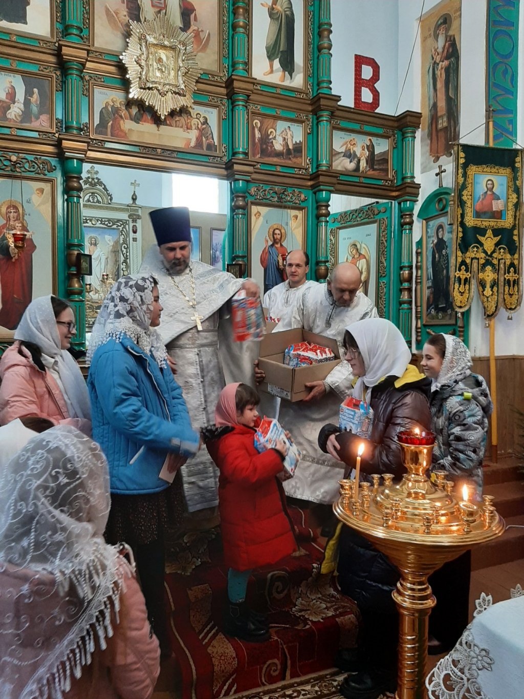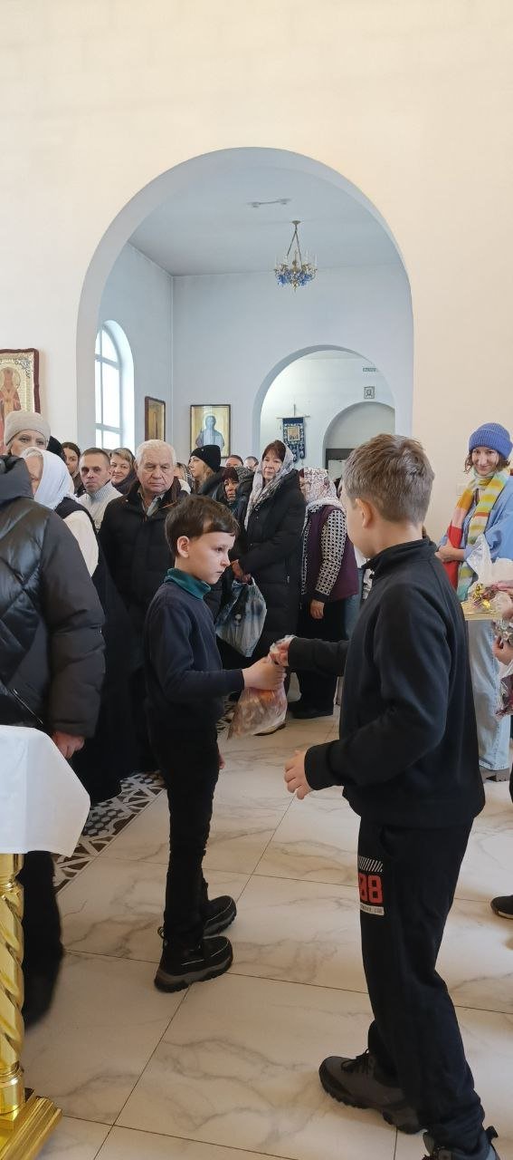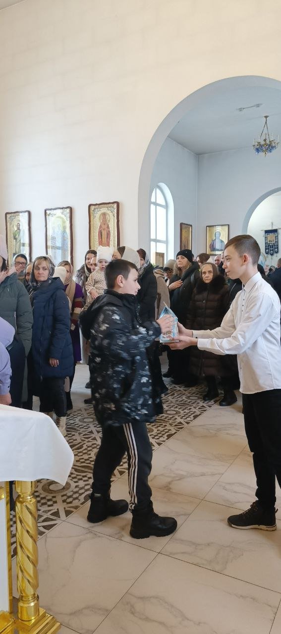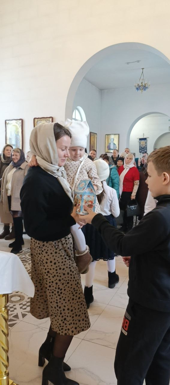 Настоятель прихода протоиерей Виталий Левчук пожелал всем мира, добра и духовной радости и вручил ребятам сладкие угощения.