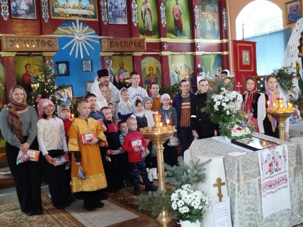 В День Рождества Христова учащиеся воскресной школы прихода храма Казанской иконы Божией Матери аг.Лучин радушно поздравляли прихожан с светлым праздником.
