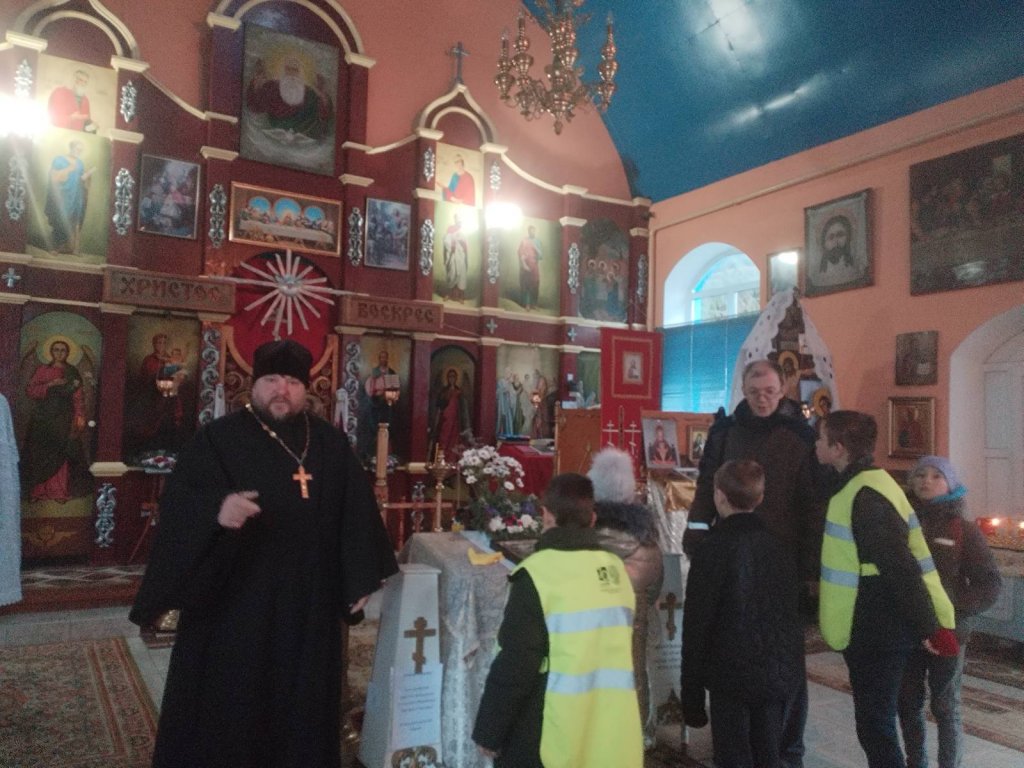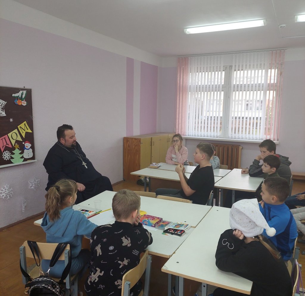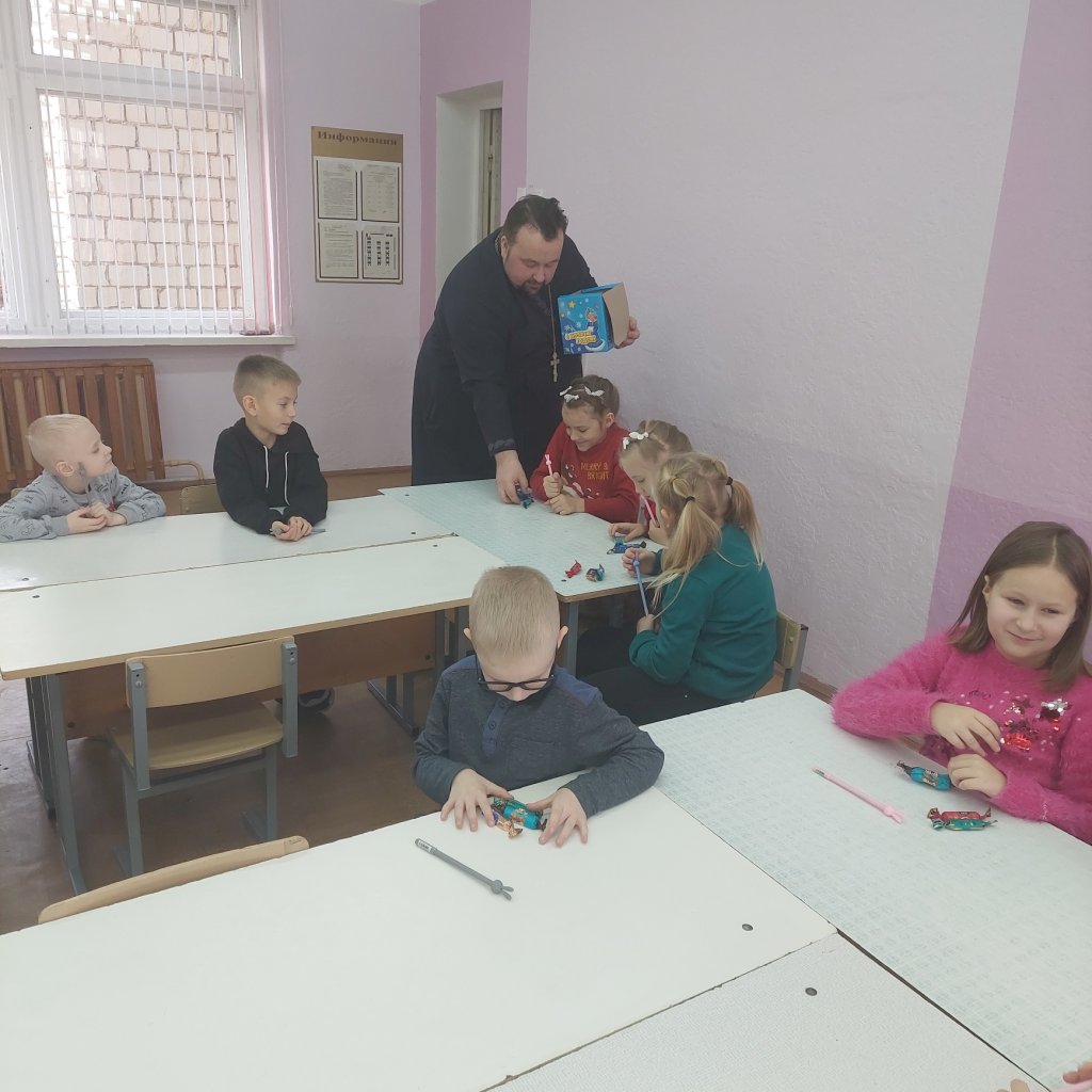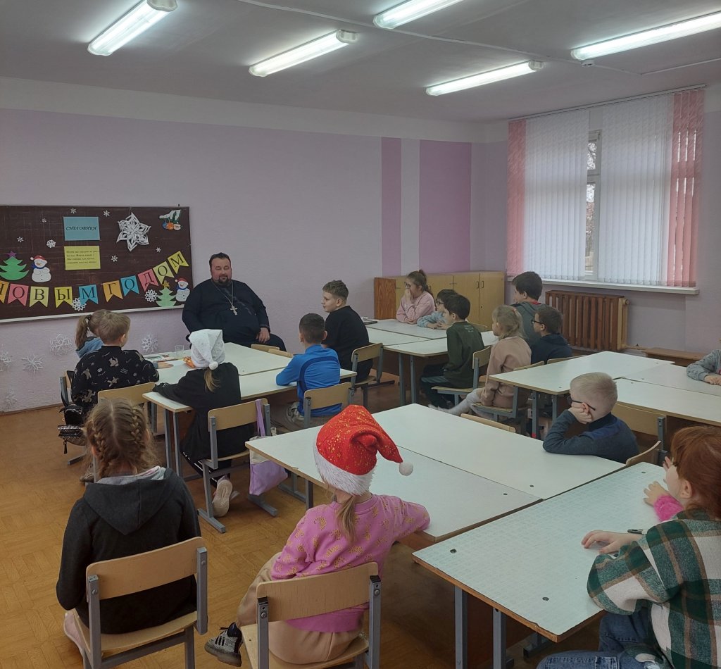 26 декабря клирик прихода храма святого благоверного князя Александра Невского в г.Рогачеве иерей Дионисий Фенюк рассказал ребятам оздоровительного лагеря ГУО «Средняя школа №6 г.Рогачева» о Рождестве Христовом.