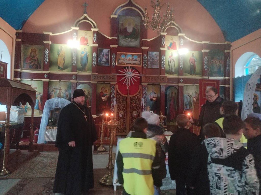 Вместе с батюшкой юные экскурсанты помолились, желающие дети исповедовались. Затем воспитанники школьного лагеря под руководством своего учителя Шепелева Николая Ивановича убрали территорию храма. Отец Владимир Руденок угостил своих помощников сладостями.