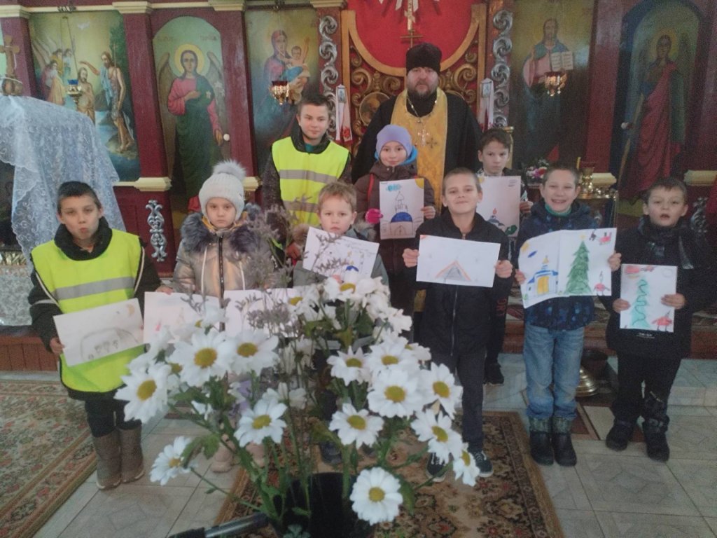 30 декабря приход храма святых апостолов Петра и Павла в аг.Поболово посетили ребята из школьного лагеря местной школы. Как всегда, учащиеся пришли к своему батюшке – протоиерею Владимиру Руденку – с рисунками о храме и предстоящих праздниках.