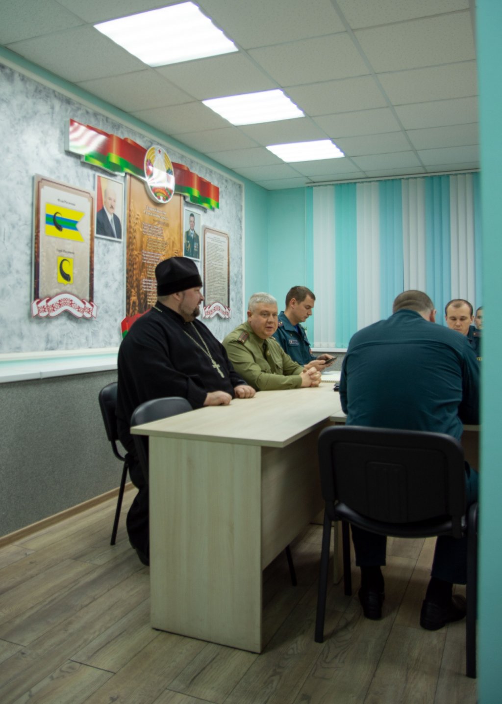 20 декабря клирик прихода храма святого благоверного князя Александра Невского в г.Рогачеве иерей Дионисий Фенюк принял участие в Едином дне информирования, который прошел в Рогачевском районном отделе по чрезвычайным ситуациям и был посвящен теме «Беларусь – страна мира и согласия».