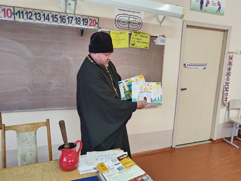 В свою очередь, ребята подготовили для батюшки рисунки, где они постарались изобразить родную церковь и самого настоятеля прихода. Замечательные получились рисунки!