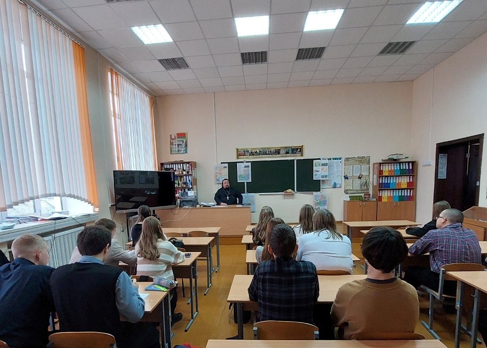 6 декабря, в день памяти святого благоверного князя Александра Невского, иерей Дионисий Фенюк, клирик прихода одноименного храма в г. Рогачеве встретился с учащимися 10 «А» класса средней школы №2 г.Рогачева.