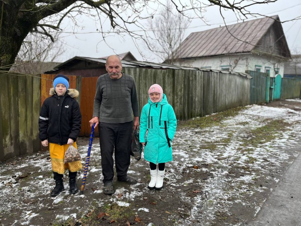 Пожилой односельчанин Николай сам подготовил для ребят подарок – угостил их орехами, выращенными в своем саду.
