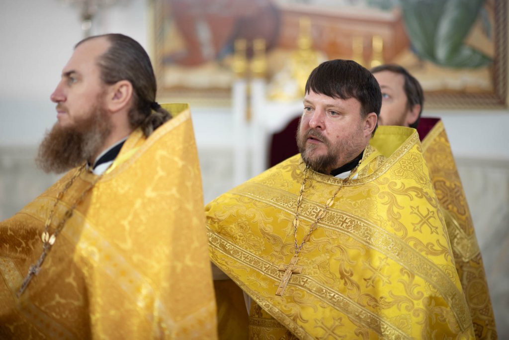 Высокопреосвященнейшему сослужили: секретарь Гомельской епархии протоиерей Георгий Алампиев, благочинный Жлобинского округа протоиерей Алексей Смотрицкий, благочинный Рогачевского округа и настоятель прихода иерей Алексей Сергеев, духовенство благочиния и епархии.