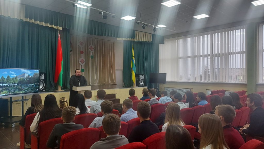 4 декабря клирик прихода храма святого благоверного князя Александра Невского в г.Рогачеве иерей Дионисий Фенюк посетил 8-ые классы ГУО «Средняя школа №6 г.Рогачева».