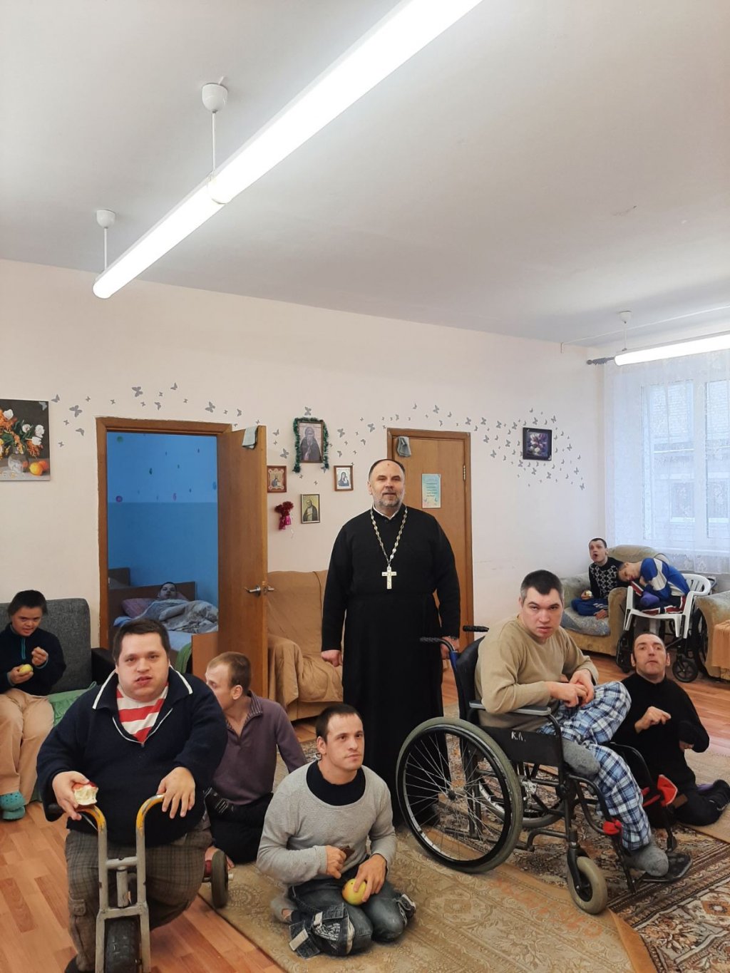 Священник отслужил молебен о здравии, поздравил с праздником Введения во храм Пресвятой Богородицы. Попросил подопечных пансионата помогать друг другу по силе своей. Ведь по слову апостола Павла …«каждый из нас должен угождать ближнему, во благо, к назиданию» (Рим.15:2) и богатеть добрыми делами, быть щедрыми и общительными.
