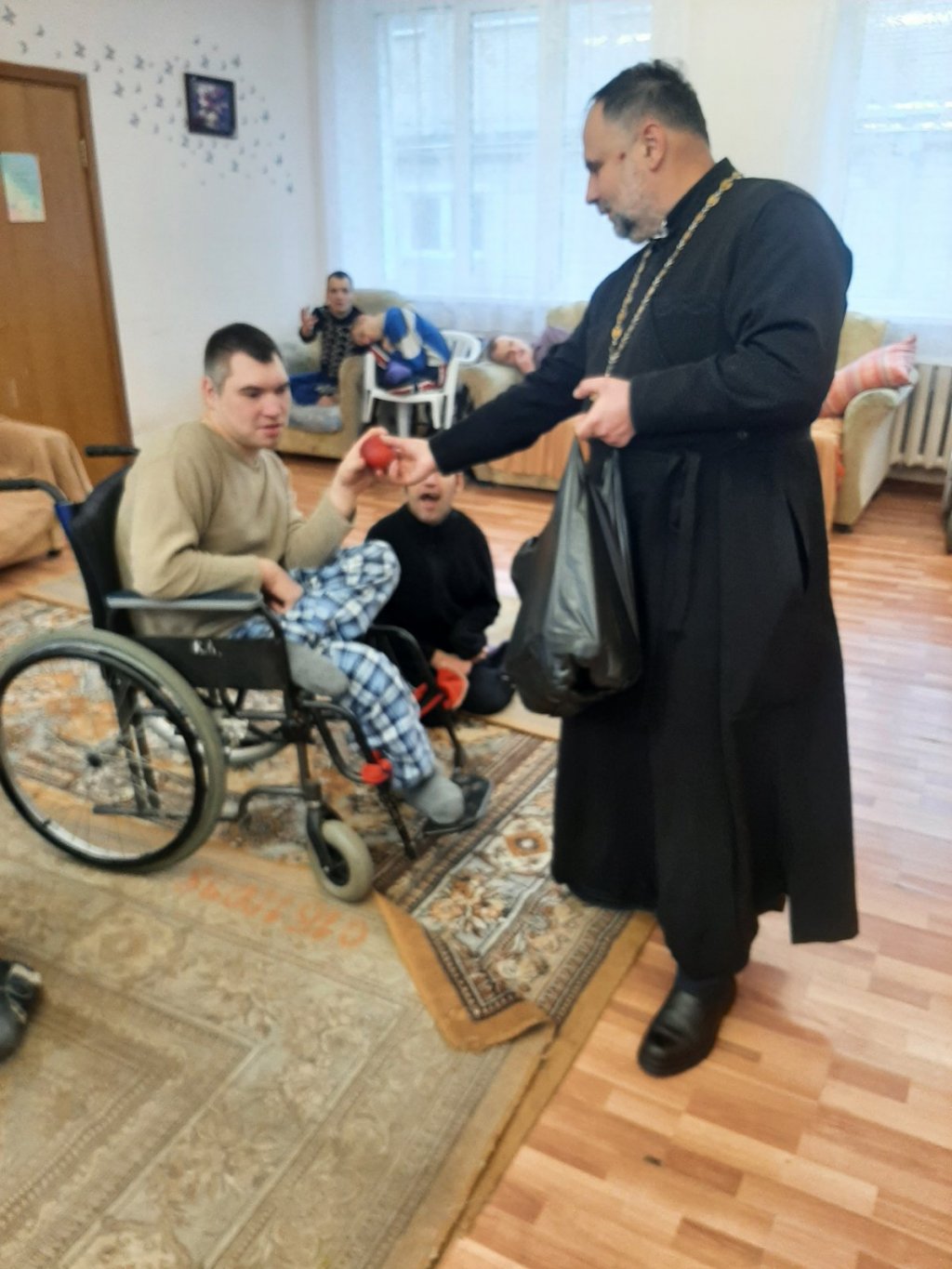 4 декабря настоятель прихода храма святого пророка Илии в аг.Журавичи протоиерей Виталий Левчук посетил подопечных государственного учреждения «Рогачёвский социальный пансионат «Журавинка» в поселке Пахарь.