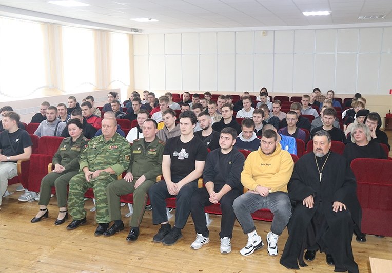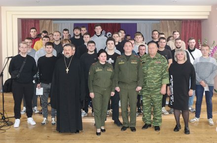Обращаясь к новобранцам, настоятель прихода храма святителя Николая Чудотворца в г.п.Корма иерей Георгий Орловский отметил, что православное русское воинство, славное своими ратными подвигами, всегда в молитве призывало помощь Бога и святых воинов. Священник пожелал, чтобы служба в армии стала для юношей временем становления и укрепления духа и окропил их святой водой.