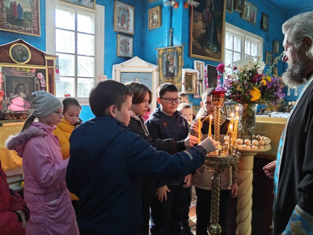 Школьники со своим педагогом внимательно слушали священника, задавали вопросы. Затем дети поставили свечи, помолились о здравии своих родных, о помощи в учении.