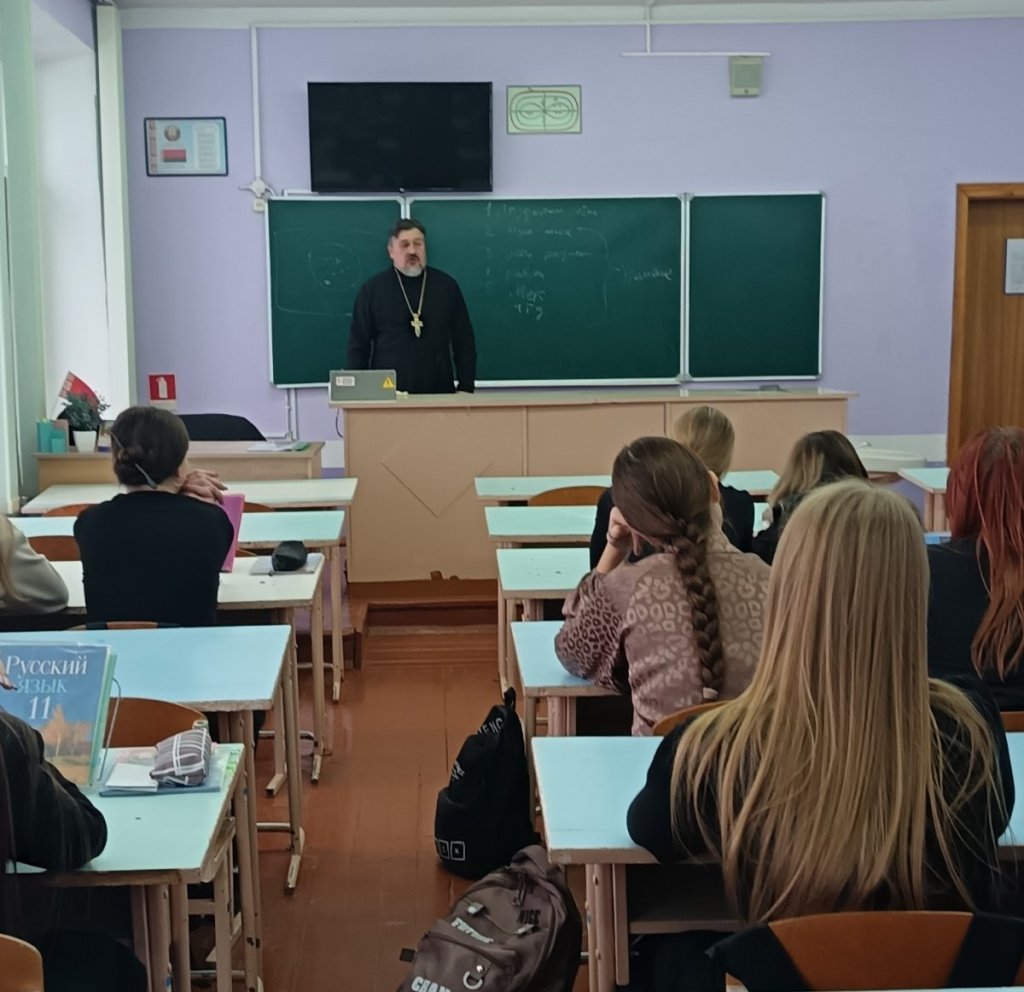 В Тихиничской школе прошла встреча старшеклассников с настоятелем прихода храма святого Архангела Михаила, протоиереем Николаем Степановым. Тема беседы «Формирование личности и вызовы времени» была близка и актуальна для молодых людей, стоящих на пороге взрослой жизни.