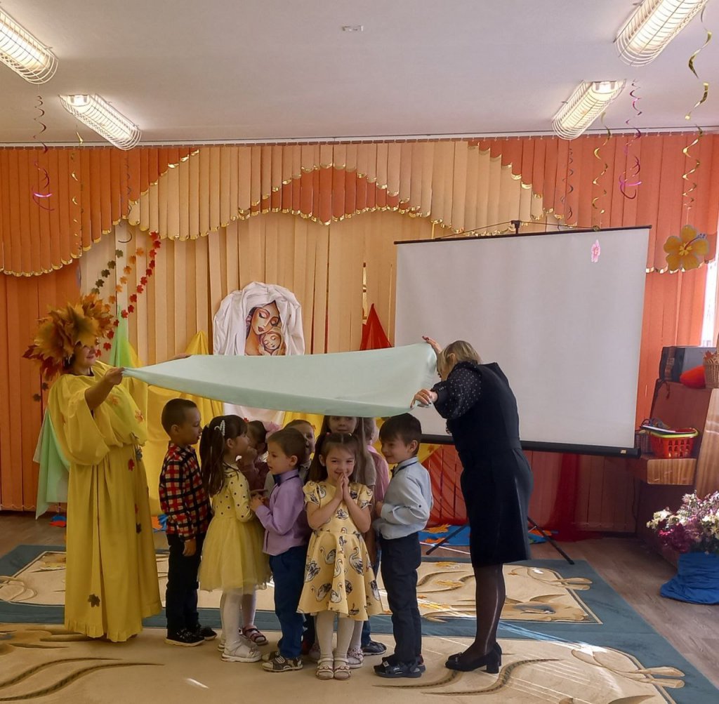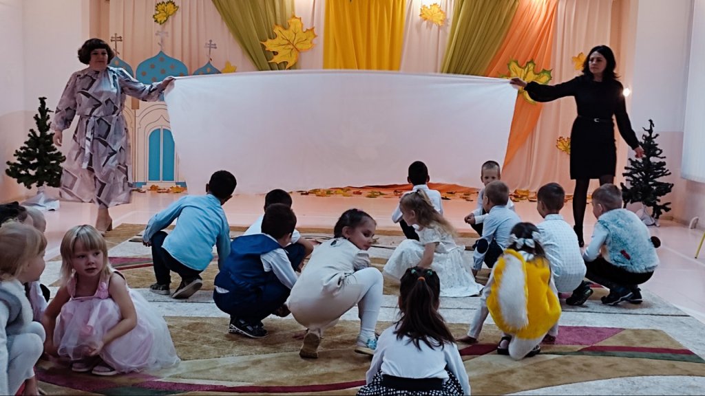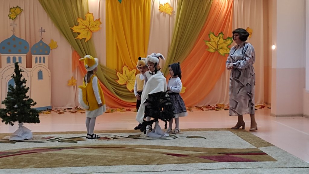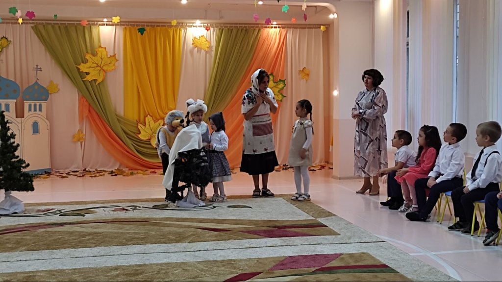 Воспитатели Феоктистова Наталья Сергеевна, Григорьева Илона Игоревна и музыкальный руководитель Жандорова Виктория Александровна через театральную постановку, стихи, песни познакомили детей с историей праздника Покрова Пресвятой Богородицы.