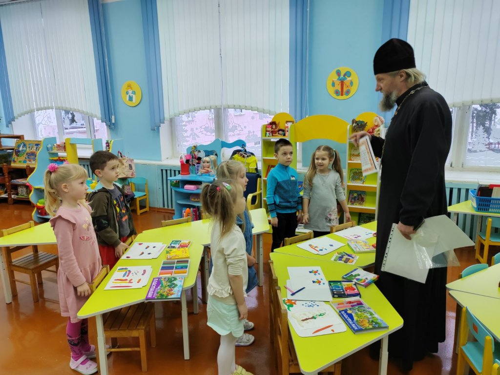 Настоятель прихода храма Святого Духа в аг.Дворец протоиерей Владимир Янчесов посетил детский сад № 4 г.Рогачева. Воспитанникам шести групп было рассказано о Рождественском посте, который ведёт нас к великому событию – светлому празднику Рождества Христова.