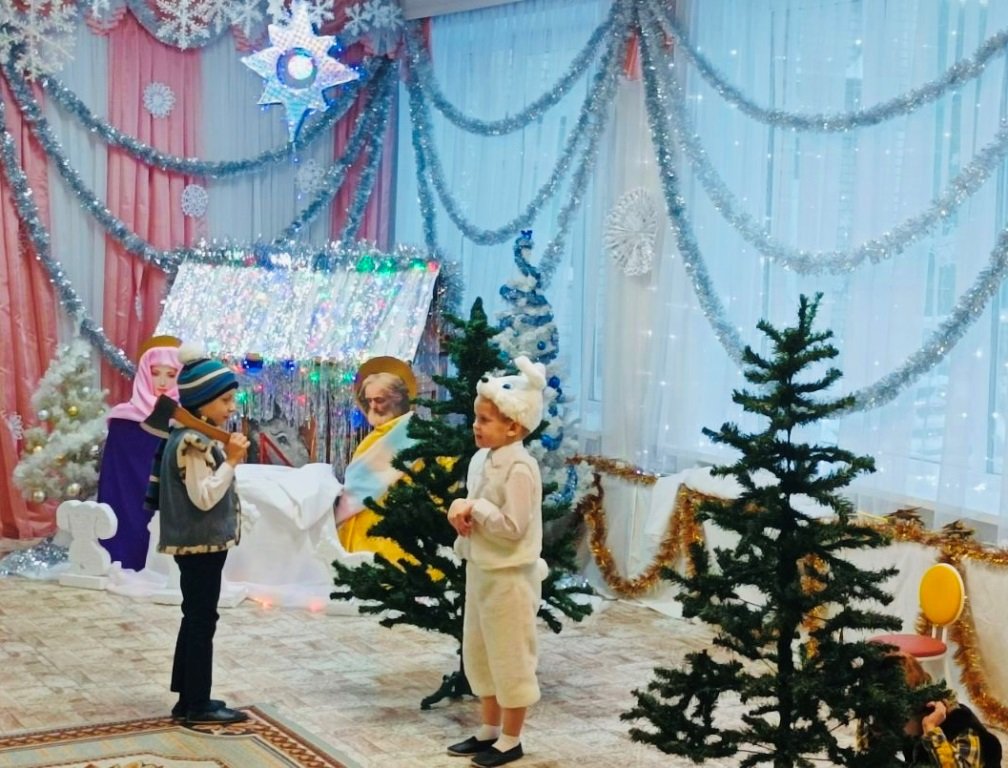 12 января воспитанники старшей группы детского сада №7 со своими педагогами Мариной Ивановной Баранчук и Ивантатовой Еленой Викторовной славили Рождество Христово.