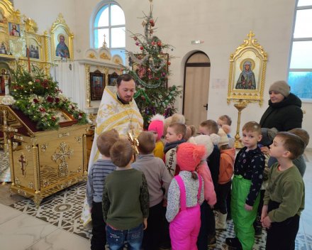 19 января, в День Святого Богоявления и Крещения Господня, воспитанники детского сада №6 г.п. Корма посетили храм святителя Николая Чудотворца. Экскурсию для гостей провела прихожанка храма Галина Крук. Она рассказала об устройстве храма и его святынях. Настоятель прихода храма святителя Николая Чудотворца г.п. Корма иерей Георгий Орловский познакомил детей с историей праздника, окропил их святой водой и пожелал духовного и телесного здравия.