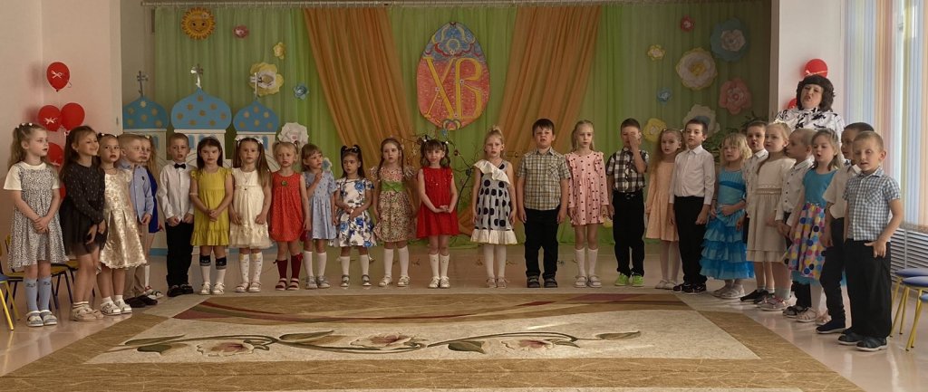 Дети под руководством воспитателей дружно пели и рассказывали пасхальные стихи.