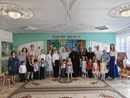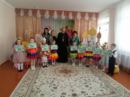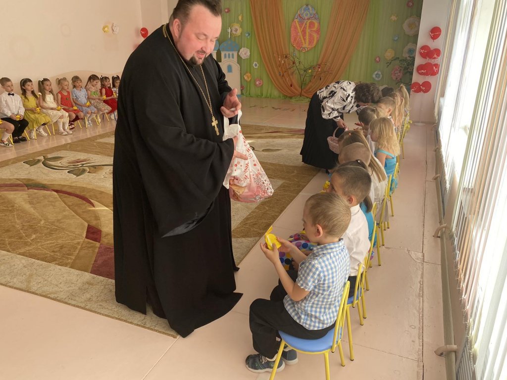 Гостем Пасхального выступления воспитанников старшей группы ГУО "Санаторный детский сад №4 г. Рогачёва" стал протоиерей Владимир Янчесов, настоятель прихода храма Святого Духа в аг.Дворец. Священник поблагодарил ребят и педагогов за прекрасное выступление, пожелал всем мира, здравия и пасхальной радости и вручил ребятам сладкие угощения и альбомы для рисования.