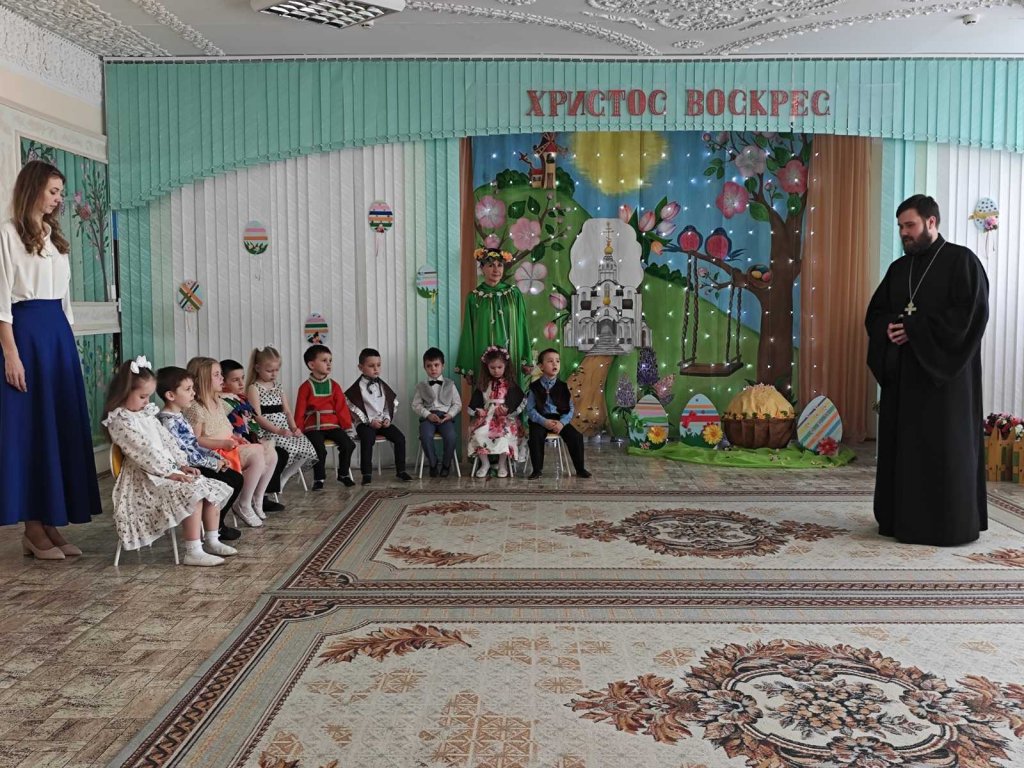 Участником праздничной Пасхальной программы в ГУО «Детский сад №13 г.Рогачева» в группе детей, где воспитание осуществляется на православных традициях белорусского народа, стал клирик прихода храма святого благоверного князя Александра Невского в г.Рогачеве иерей Александр Ткаченко.