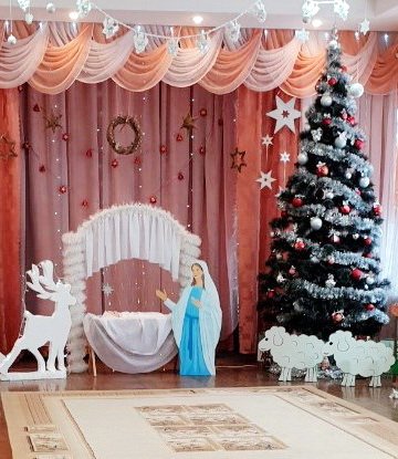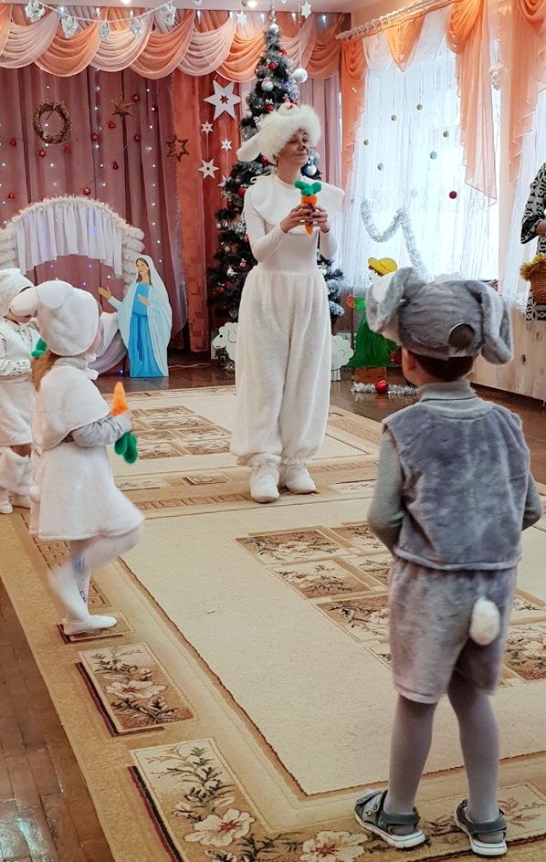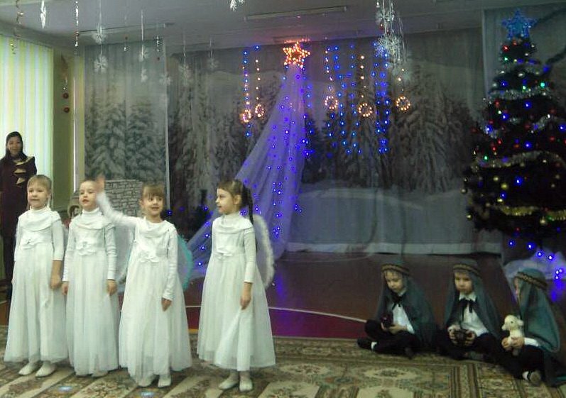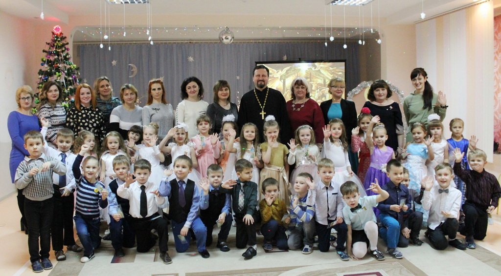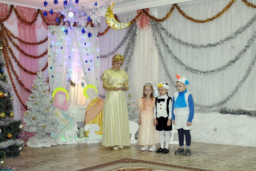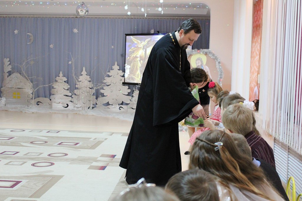 подготовили старшие группы, в которых дети воспитываются на православных традициях белорусского народа. Радостную весть о рождении Богомладенца они передавали в песнях и стихотворениях. Рождество - время чудес, которые совершает Господь по молитвам любящих сердец. Ребята поведали об этом в трогательной инсценировке о девочке Настеньке, которая в этот радостный праздник грустила одна, потому что крёстная заболела. Друзья - лесные зверята - решили подарить девочке хорошее настроение, ведь она всегда заботилась о них. По их молитвам Господь исцелил крёстную, и все дружно радовались Рождению Спасителя. Благодаря совместной работе воспитателей Журавлёвой Татьяны Леонидовны, Баранчук Марины Ивановны и музыкального руководителя Ивантатовой Елены Викторовны, праздник получился очень светлым и добрым. Это отметил в поздравлении протоиерей Александр Атрощенко. Священник ещё раз напомнил ребятам и взрослым евангельскую историю Рождества Господа нашего Иисуса Христа и пожелал, чтобы в семьях всегда царила любовь и атмосфера добра и уважения друг к другу. На память о празднике отец Александр подарил ребятам маленькие рождественские сувениры.