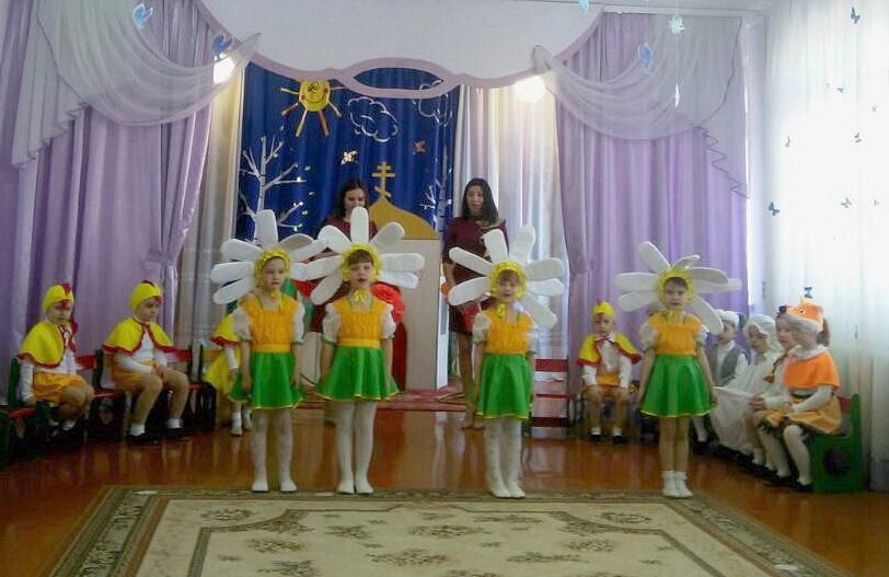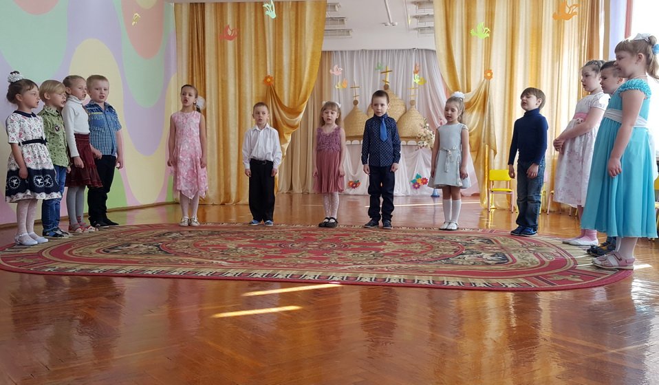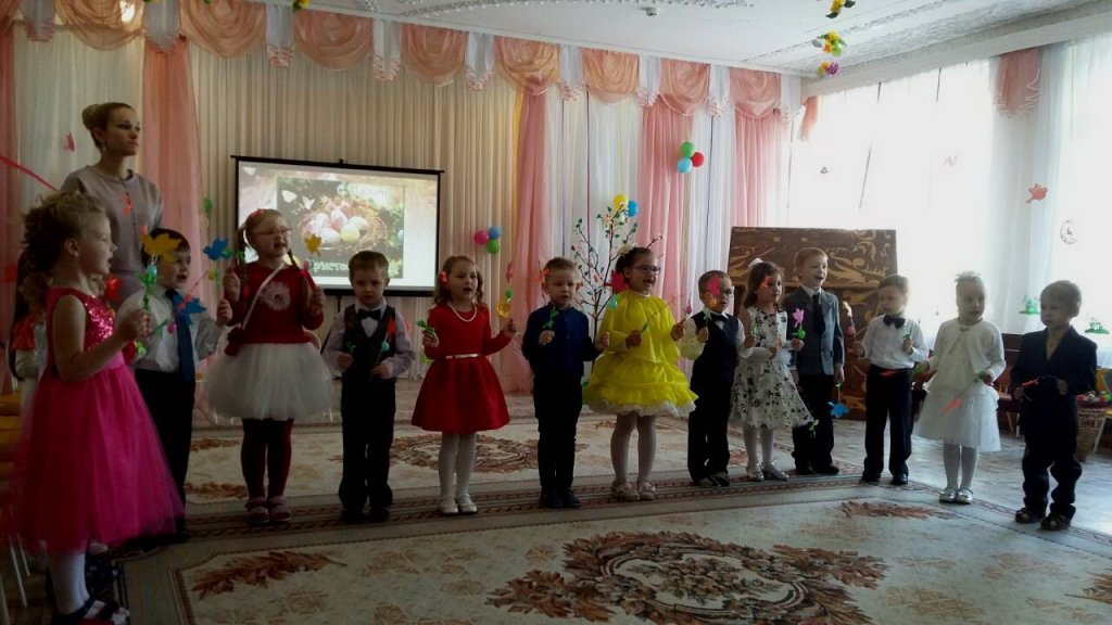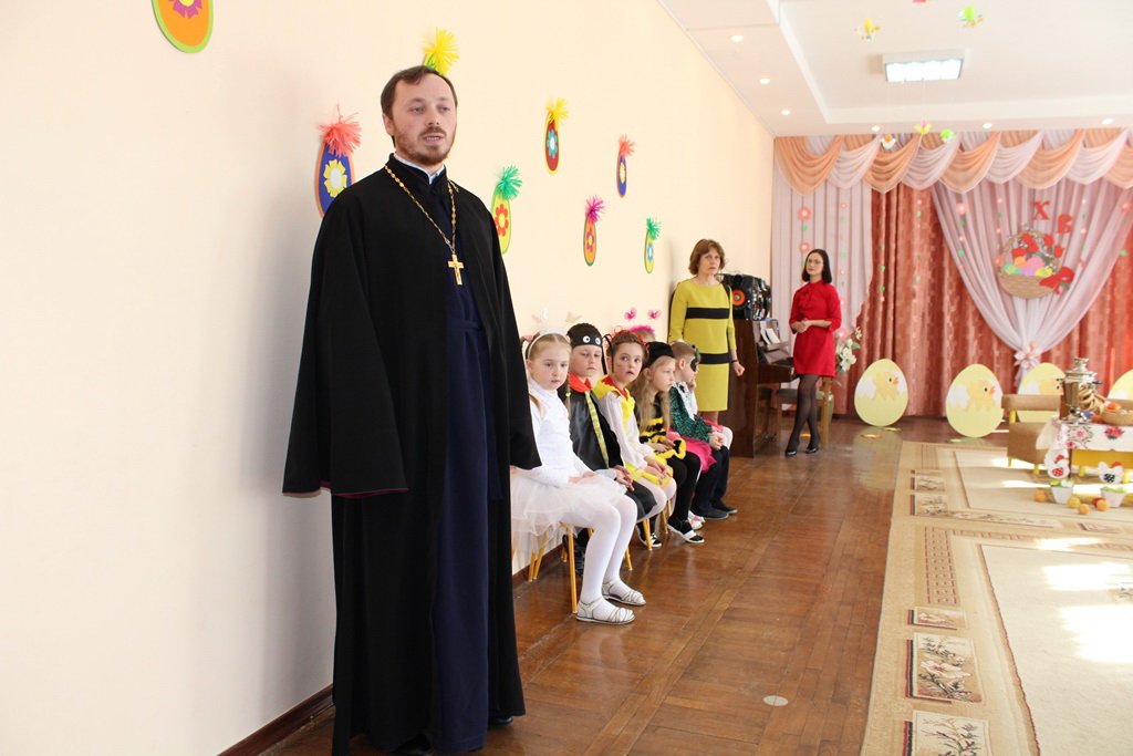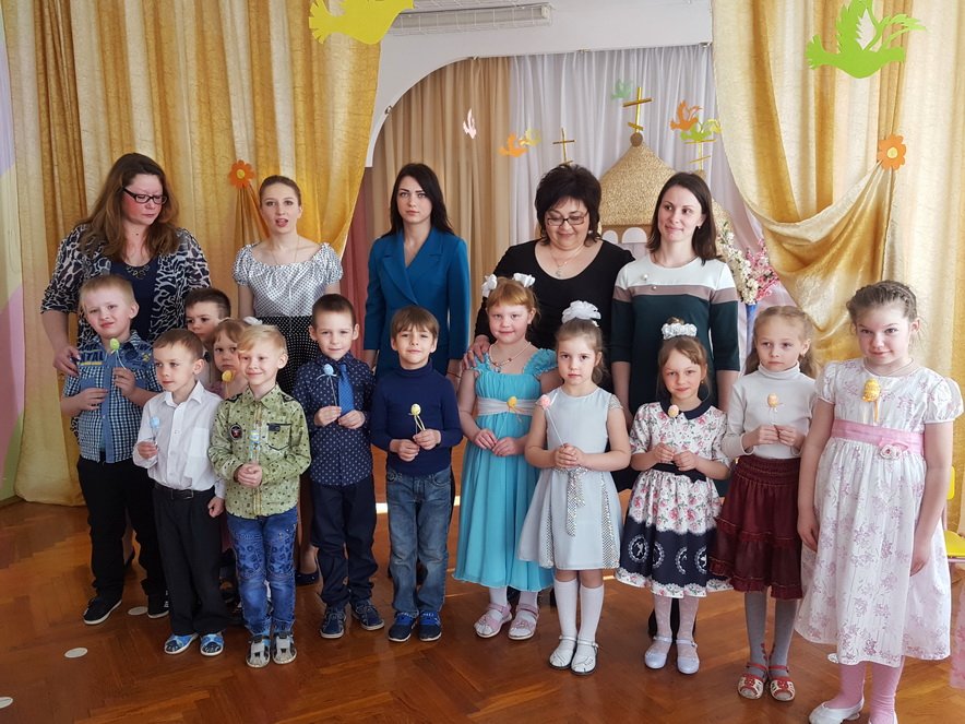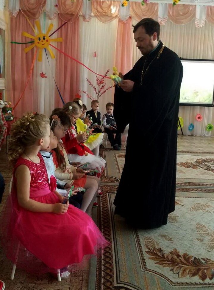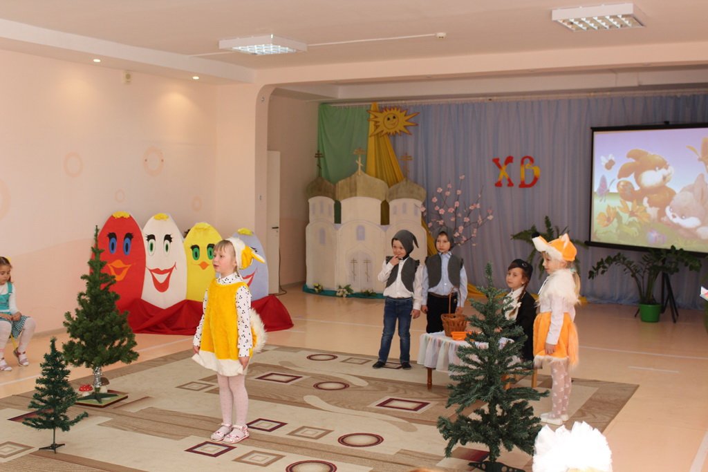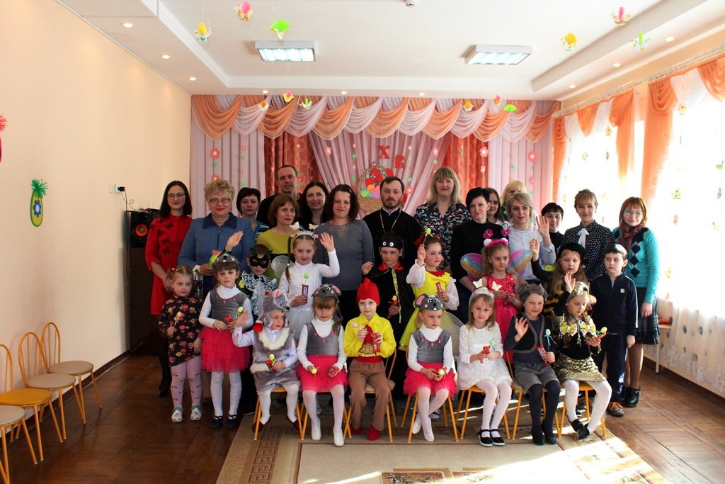 Эстафету праздничных пасхальных представлений в дошкольных учреждениях продолжил 13 апреля ясли-сад №11 программой «Чудесный день, душа сияй, и сердце Бога прославляй!», которую подготовили воспитанники старшей группы. Благодаря совместному творчеству детей, воспитателей Феоктистовой Натальи Сергеевны и Андреевой Cветланы Васильевны и музыкального руководителя Заплешниковой Натальи Юрьевны зрители побывали в гостях у Мухи-Цокотухи. Гостеприимная хозяйка в светлый праздник Воскресения Христова готовилась угостить своих друзей, а шаловливые мышки разбили золотое яичко. Но в такой день, когда вся природа радуется Воскресению Спасителя, нельзя грустить, поэтому друзья очень старались утешить Муху - Цокотуху пасхальными песнями и танцами, весёлыми играми и замечательными стихотворениями. А милые цыплятки принесли ей в подарок «крашенки». Все вместе друзья прославляли Христа и радовались весне. Общую радость разделил с ребятами и взрослыми иерей Георгий Орловский, настоятель прихода храма Покрова Пресвятой Богородицы аг. Довск. Он поздравил всех с Воскресением Христовым, объяснил, какое важное значение имеет для нас это событие, и пожелал всегда хранить в душе огонёчек веры. На память о празднике отец Георгий подарил ребятам пасхальные сувениры.