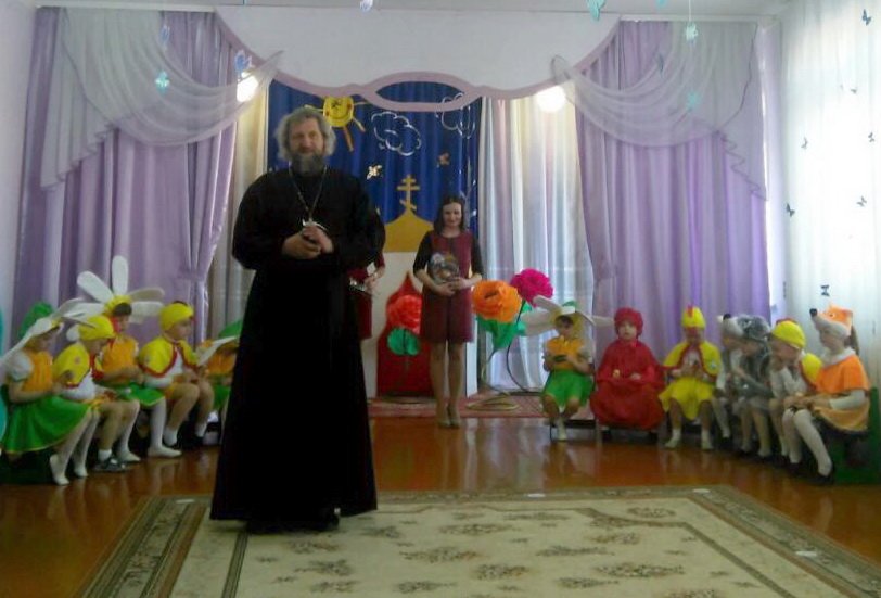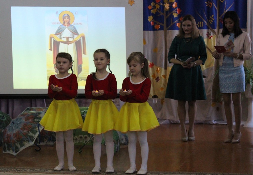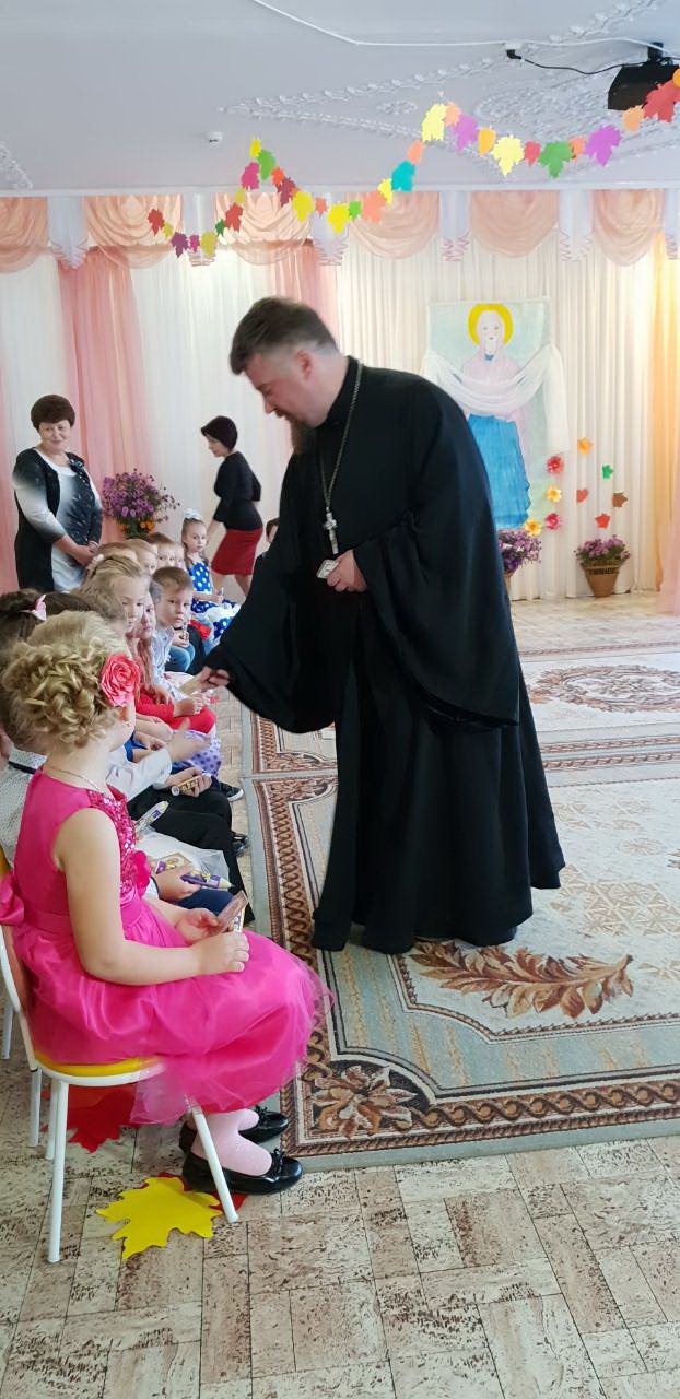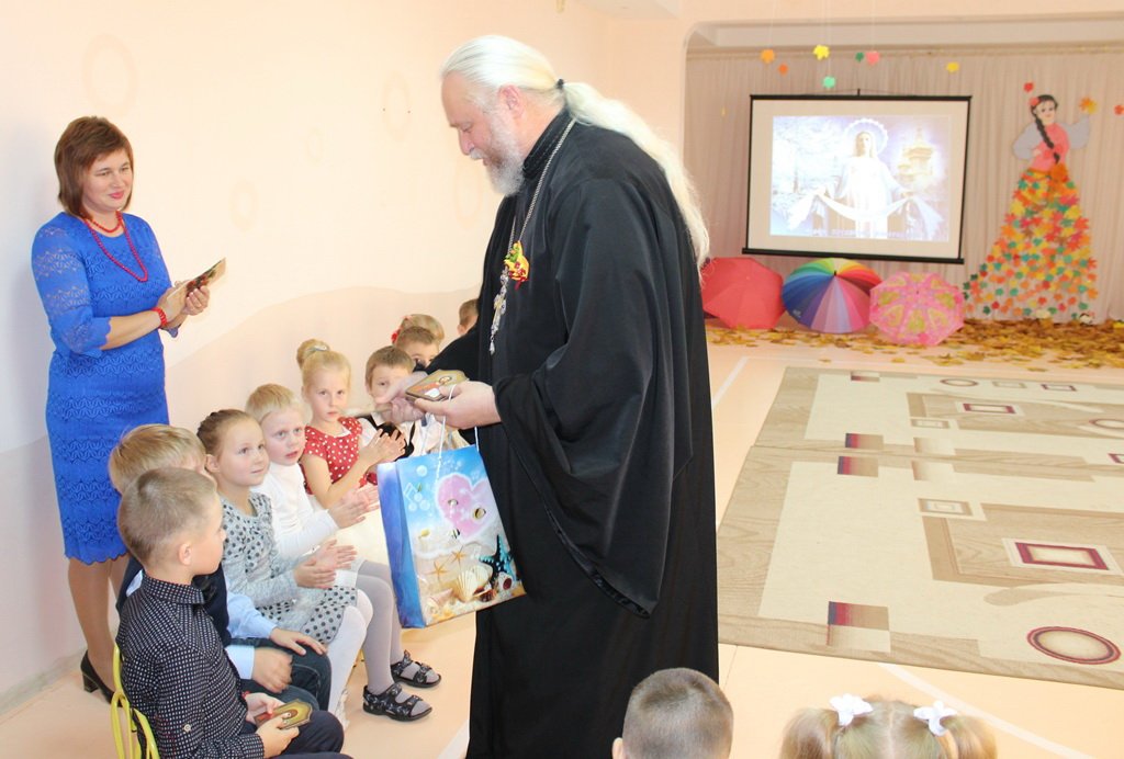 Совместная работа музыкального руководителя Волчковой Аллы Викторовны, педагогов Ковырзиной Екатерины Александровны и Скорых Регины Ермековны подарила много радостных минут и взрослым, и детям. Заканчивая праздник, протоиерей Владимир Янчесов поблагодарил за замечательное представление, поздравил всех с праздниками Покрова Пресвятой Богородицы и Днём матери. Священник подарил детскому саду свою картину, на которой Пресвятая Богородица распростёрла Свой Покров над этим домом, где когда-то воспитывался он сам и где сейчас воспитывают ребят на православных традициях белорусского народа. А детям отец Владимир подарил иконочки, чтобы ребята не забывали обращаться в молитве к Божией Матери и в радости, и в печали.