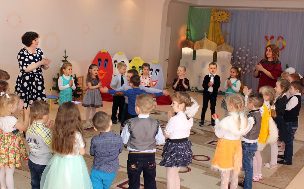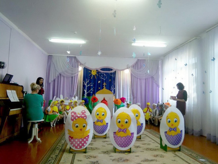 «Светлый праздник Пасхи мы встречаем!» - радовались 11 апреля воспитанники средней группы ГУО «Санаторный ясли-сад №4 г.Рогачева». Благодаря им и их воспитателям Ковырзиной Екатерине Александровне и Скорых Регине Ермековне гости праздника оказались на весенней полянке среди очаровательных ромашек, которые не только пели пасхальные песни и танцевали, но и помогли цыплёнку отыскать маму-курицу. Ребята с удовольствием знакомились с народными традициями празднования Светлого Христова Воскресения, играли в пасхальные игры. Праздник удался на славу! Поздравить ребят и взрослых с Праздником праздников пришёл протоиерей Владимир Янчесов, настоятель прихода храма Святого Духа д. Дворец, который и сам когда-то был воспитанником этого детского сада. Он поблагодарил ребят, воспитателей и музыкального руководителя Волчкову Аллу Викторовну за замечательное представление и вручил всем пасхальные сувениры.