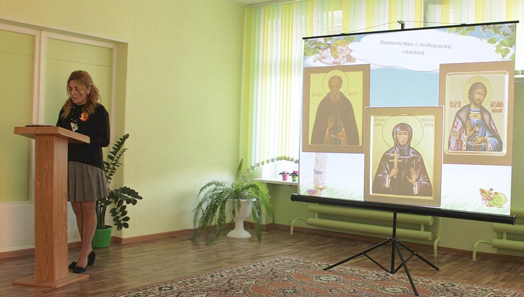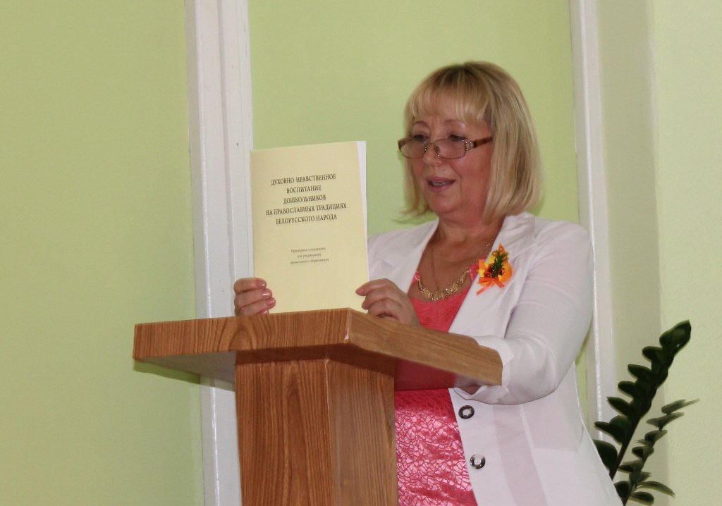 18 октября на базе ресурсного центра по духовно-нравственному воспитанию государственного учреждения образования «Ясли-сад №7 г. Рогачёва» состоялось первое занятие Школы профессионального мастерства для педагогических работников, организующих духовно-нравственное воспитание в учреждениях дошкольного образования. Занятие было посвящено организации реализации программы «Духовно-нравственное воспитание дошкольников на православных традициях белорусского народа» в учреждениях дошкольного образования, её содержанию и формам. Руководила ходом занятия Пашковская Н.А. ,методист по дошкольному воспитанию Рогачёвского отдела образования, спорта и туризма. Маголло Т.М. , заведующий учреждением образования, познакомила педагогов с правовыми основами взаимодействия учреждений образования с религиозными организациями. О специфике организации работы по программе «Духовно-нравственное воспитание дошкольников на православных традициях белорусского народа» в учреждениях дошкольного образования, методологических и методических принципах программы рассказала Бакадорова Н.В. - заместитель заведующего по основной деятельности . Воспитатель Минкова А.М. раскрыла в своём выступлении формы и методы воспитания на православных традициях белорусского народа. В работе школы профессионального мастерства принял участие настоятель Прихода храма святого благоверного князя Александра Невского протоиерей Алексей Смотрицкий. После перерыва участники семинара познакомились с выставкой декоративно-прикладного творчества и посетили открытое мероприятие, посвящённое Дню Матери и празднику Покрова Пресвятой Богородицы, в старших группах, работающих по программе «Духовно-нравственное воспитание дошкольников на православных традициях белорусского народа».