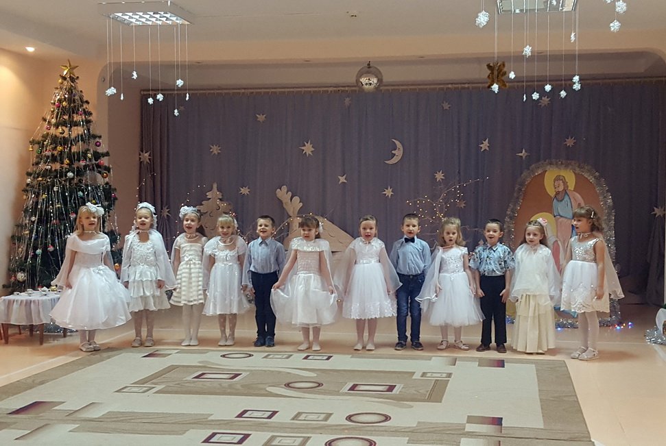 В Рождество Христово на землю незаметно спустились Ангелы и продолжают среди нас славить Рождённого Младенца. 12 января они заглянули на праздник в ясли-сад №11 г. Рогачёва к ребятам старшей группы, чтобы под аккомпанемент музыкального руководителя Заплешниковой Натальи Юрьевны петь, легко парить в танце и позвать за собой пастухов поклониться Богомладенцу. В дни Святок всё живое славит Христа и старается принести Ему дары: ягнята согревают своим дыханием, пастушки несут молочко и тёплые носочки, а мальчишки и девчонки воспевают Бога в стихах и песнях. И не только дети…Музыкальный подарок приготовила для всех педагог-психолог Головач Юлия Александровна. Христос родился – и нет места грусти в сердцах детей и взрослых. С поздравлениями к детям и взрослым обратилась Кушнерова Любовь Петровна – заведующий яслями-садом и иерей Георгий Орловский. Он поблагодарил детей, воспитателей Андрееву Светлану Васильевну и Феоктистову Наталью Сергеевну и всех участников праздника за радость, пожелали всем запомнить это ощущение радости детства и дарить его другим, дарить улыбки, тёплые слова и подарки. И батюшка воплотил это желание, вручив рождественские сувениры.