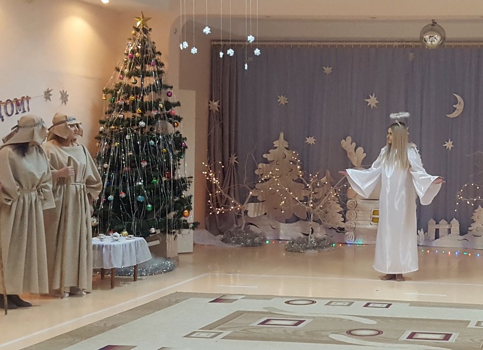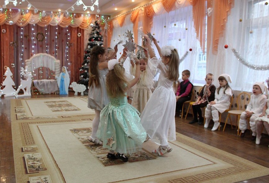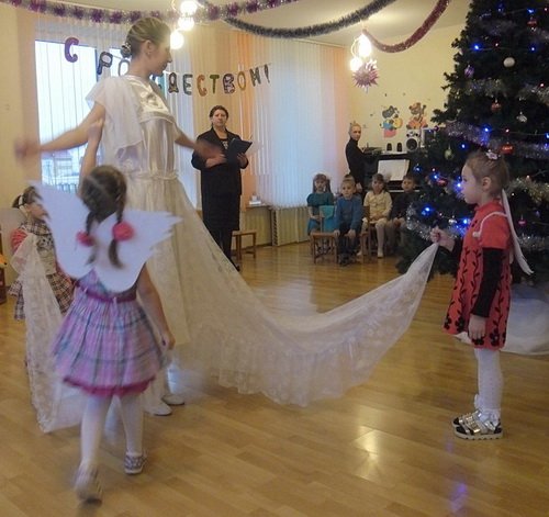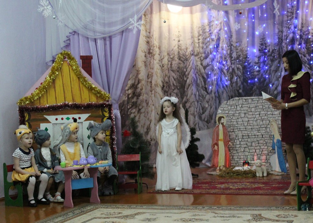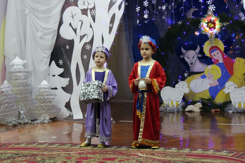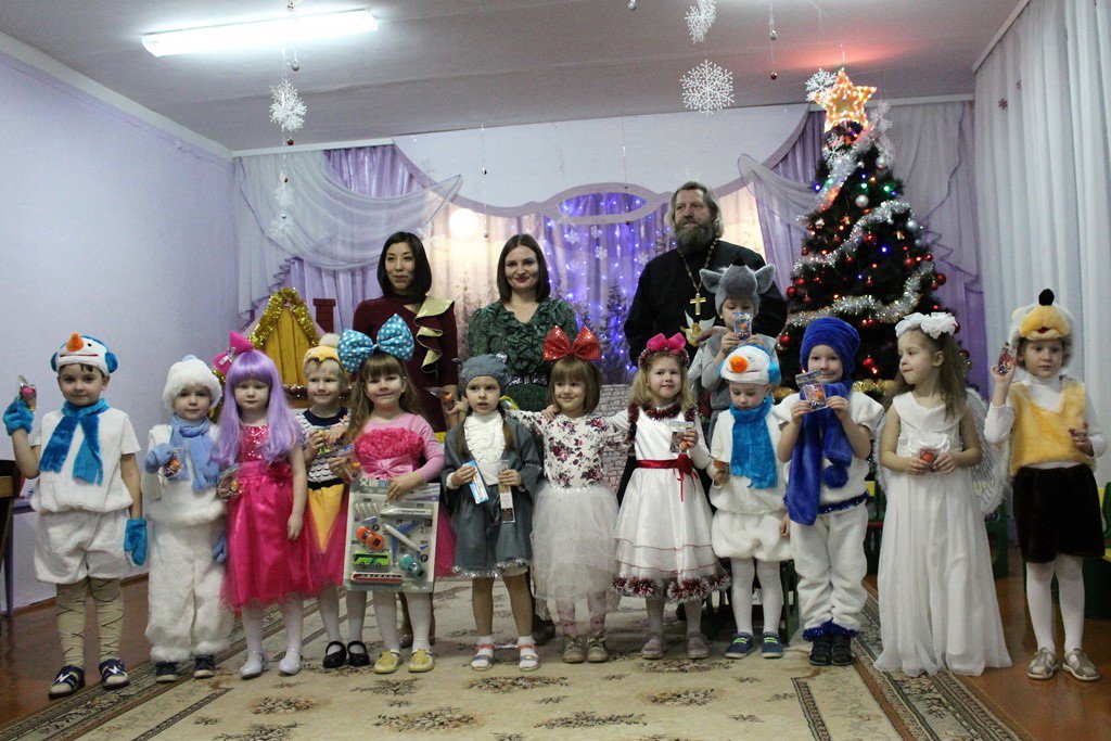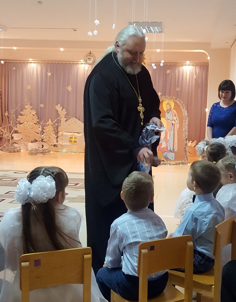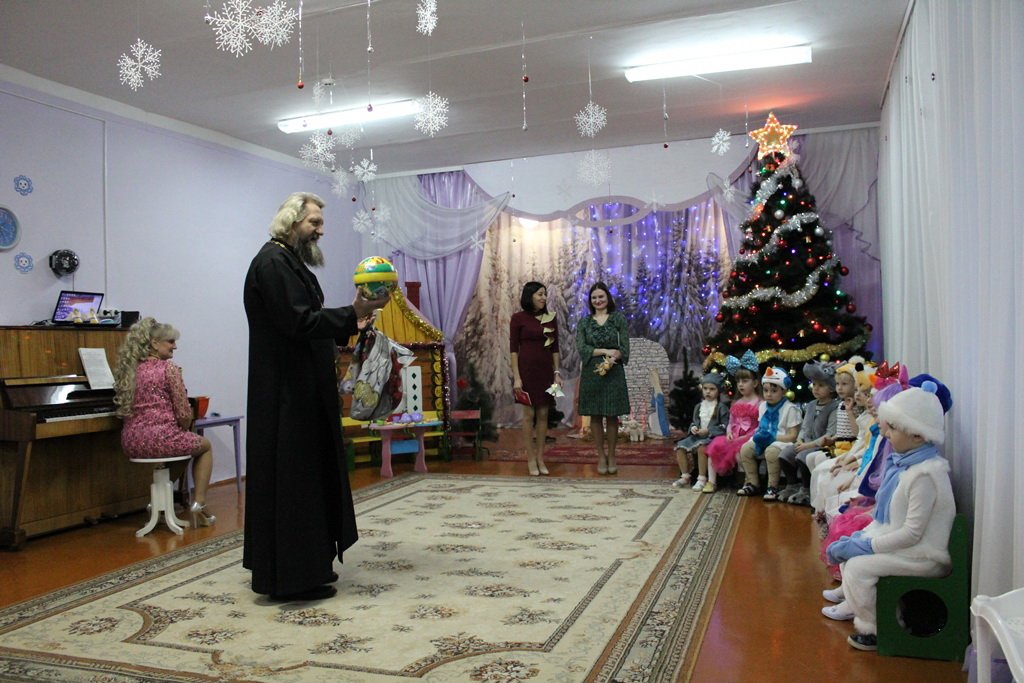 Радостную весть о родившемся Богомладенце 10 января малыши санаторного яслей-сада №4 принесли самым любимым зрителям- мамам и папам, бабушкам и дедушкам, братишкам и сестрёнкам. Стихами и песнями, трогательной инсценировкой они рассказывали о том, что Бог пришёл на Землю спасти нас от зла. Если мы станем добрее и внимательнее к ближним, это будет лучшим подарком на День Его Рождения. Благодаря ребятам и их воспитателям зрители оказались в настоящей рождественской сказке, в которой совершаются чудеса: "оживают" в танце куклы, снеговики задорно играют на музыкальных инструментах и Ангелы спускаются с небес. Протоиерей Владимир Янчесов поздравил всех с Рождеством Христовым, поблагодарил ребят и педагогов - Екатерину Александровну Ковырзину, Регину Ермековну Скорых и музыкального руководителя Волчкову Аллу Викторовну - за подаренную радость и вручил подарки.