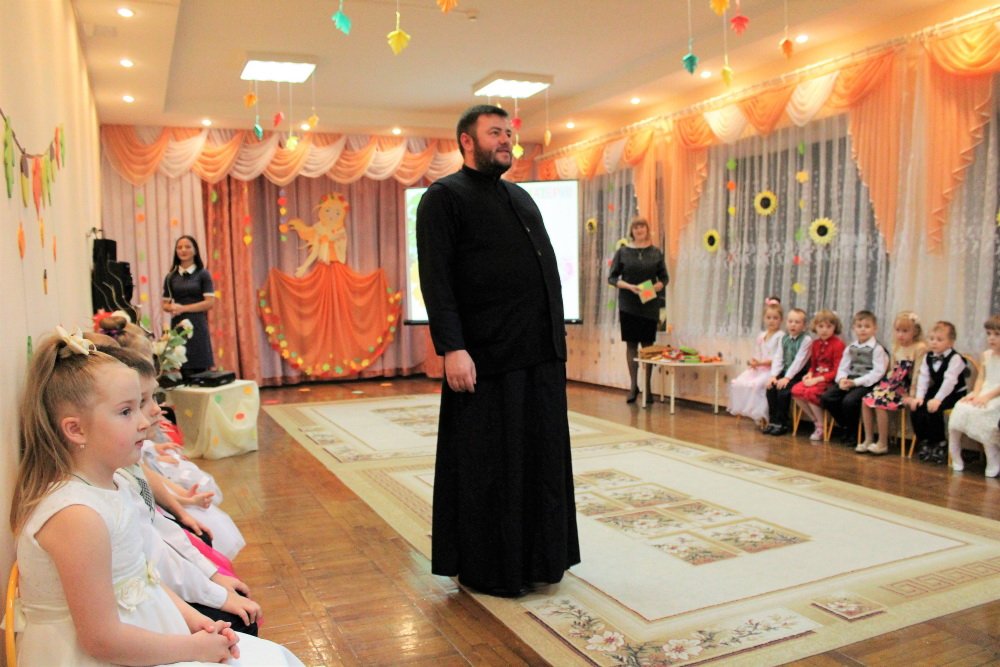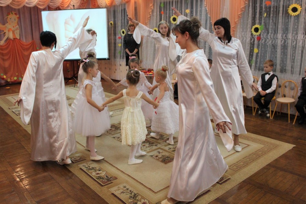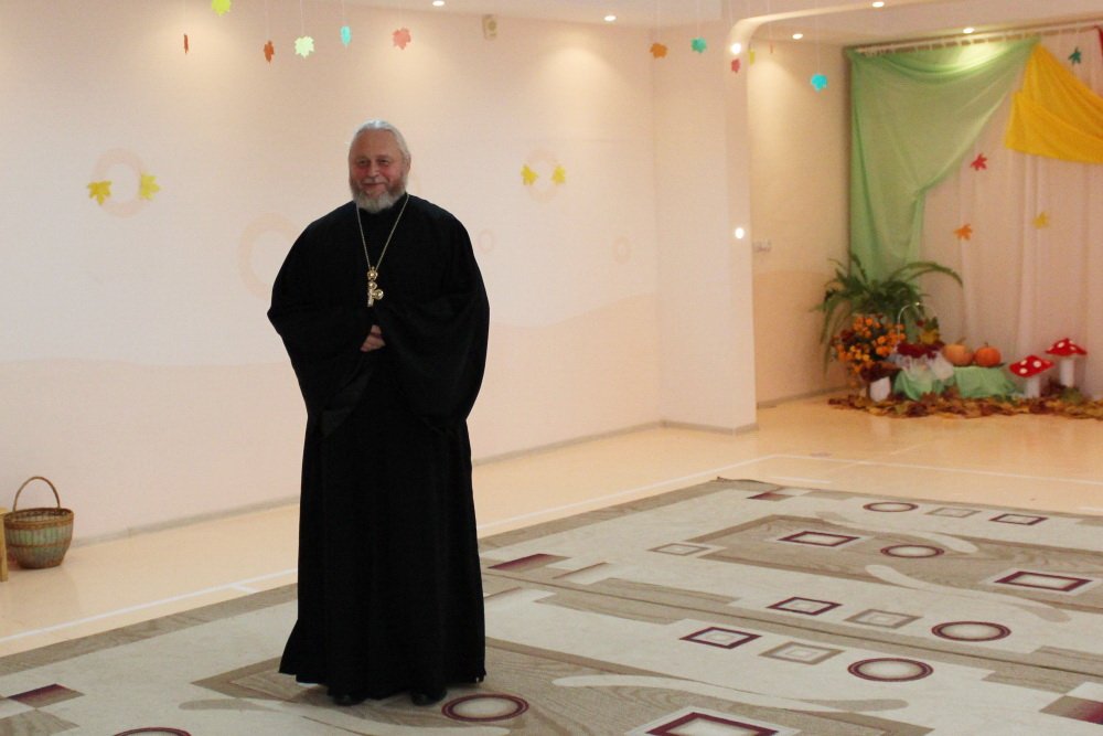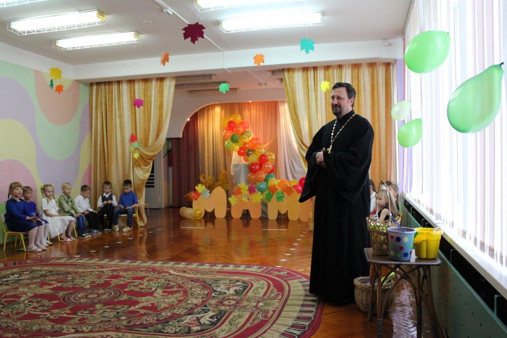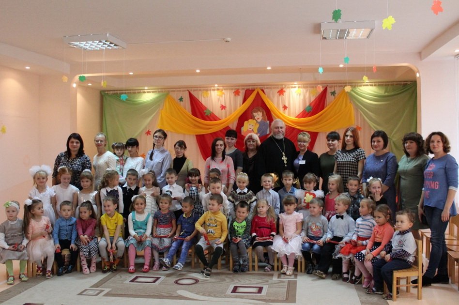 13 октября, накануне праздника Покрова Пресвятой Богородицы, на улице природа по-осеннему всплакнула дождиком. А вот в яслях-саду №12 погода была на удивление замечательно доброй, яркой и радостной. И всё потому, что его воспитанники поздравляли с праздником своих любимых мам. Для них искренно и от души исполнялись песни и танцы, читались стихотворения. Для мамочек в подвижных играх готовились ловкие помощники, способные не только легко и быстро собрать полные вёдра грибов, но и радушно угостить вкусными фруктами, приговаривая ласковые слова. Растроганные мамы украдкой смахивали слезинки умиления, любуясь своими детьми. Общую радость разделил и гость праздника протоиерей Александр Атрощенко, священник храма святого благоверного князя Александра Невского. Он поздравил всех с праздником Покрова Пресвятой Богородицы, рассказал о его истории и пожелал никогда не забывать своих мам, заботиться о них и почаще обращаться к Божией Матери, которая неустанно заботится о нас, как о своих детях, и молится обо всех людях. В благодарность за замечательное представление батюшка угостил всех ребят сладостями.