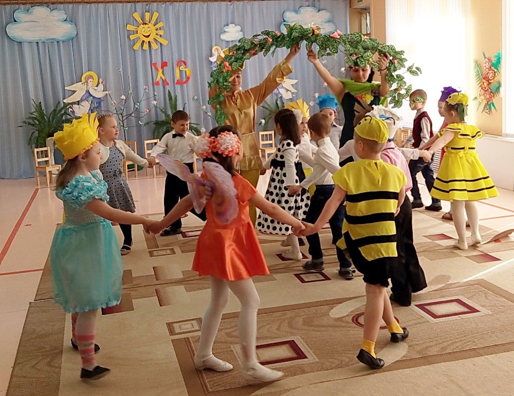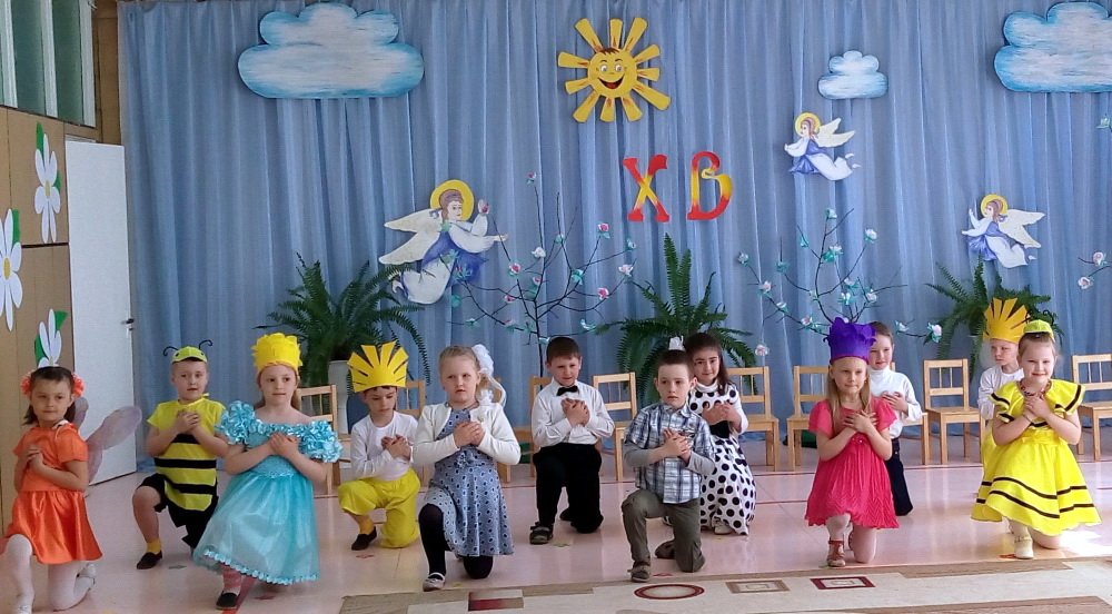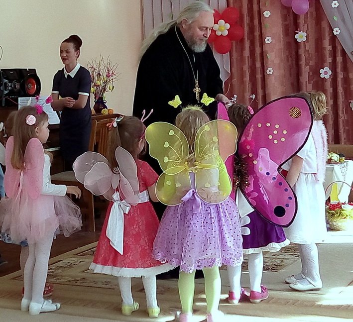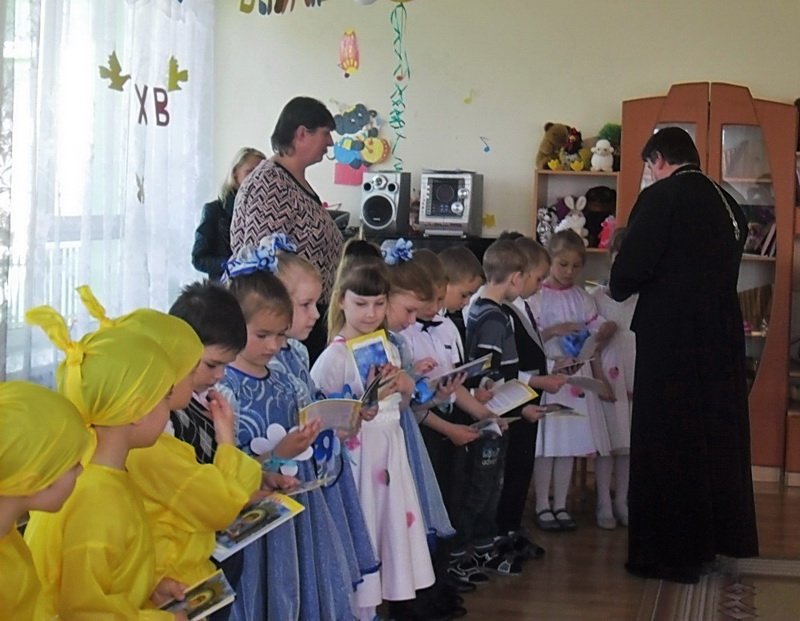 Пасхальные утренники в детских садах 4 мая открыл Санаторный детский сад №4. Воспитанники православной старшей группы подготовили для своих родных и гостей танцевальные номера, песни, стихи, в которых прославляли Воскресшего Христа. С огромным удовольствием дети участвовали в пасхальных играх с крашенками. Совместная работа музыкального руководителя Волчковой Аллы Викторовны, педагогов Миткевич Елены Николаевны и Назарковой Елены Николаевны позволила сделать праздник ярким и радостным. В заключение протоиерей Владимир Янчесов поздравил с Пасхой Христовой ребят и взрослых, поблагодарил за прекрасный праздник и вручил подарки.