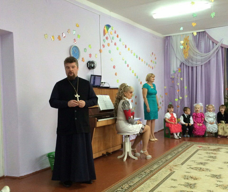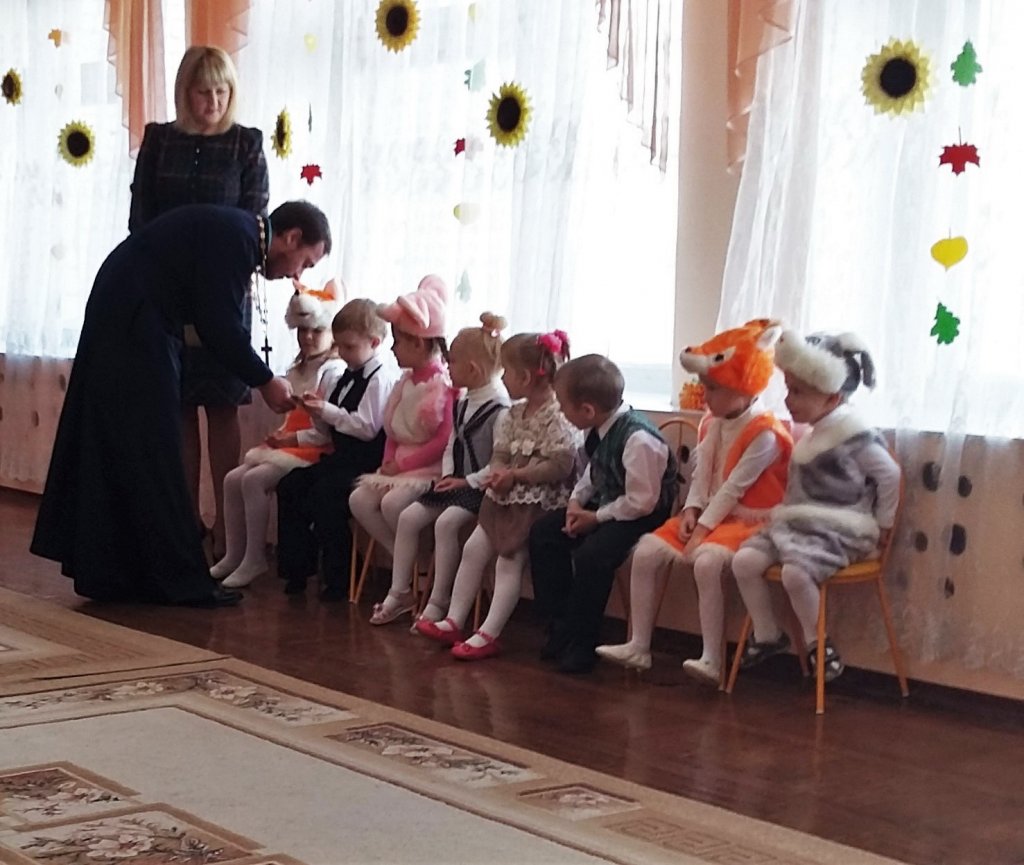 14 октября в санаторном яслях-саду №4 прошёл утренник, посвящённый праздникам Покрова Пресвятой Богородицы и Дню матери. Несмотря на хмурый осенний денёк, всем было и тепло и радостно, потому что ребята просто излучали хорошее настроение, раскрашивая осень в яркие краски.Малыши православной группы (3-4 года) старались порадовать своих мам и бабушек песнями и стихотворениями, танцами и играми. Совместная работа музыкального руководителя Волчковой Аллы Викторовны, педагогов Фроловой Маргариты Филаретовны и Ковырзиной Екатерины Александровны подарила много радостных минут и взрослым, и детям. Заканчивая праздник, протоиерей Георгий Мартышевский поблагодарил всех за замечательный утренник, ещё раз поздравил с праздниками Покрова Пресвятой Богородицы и Днём матери и вручил иконочки.