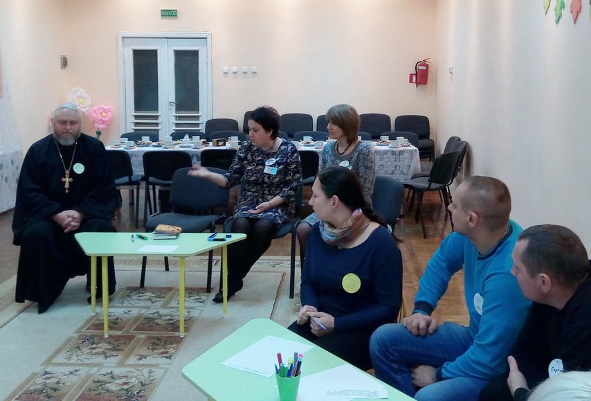 29 октября 2015 г. в православной группе ГУО «Ясли-сад №11 г. Рогачёва» состоялось необычное родительское собрание в котором принял участие настоятель прихода храма Святого благоверного князя Александра Невского протоиерей Алексей Смотрицкий. Темой собрания стало духовно-нравственное воспитание малышей. Психолог Глинка Юлия Александровна и воспитатель группы Феоктистова Наталья Сергеевна подготовили для родителей много сюрпризов. Для более близкого знакомства они предложили всем создать небольшие визитки-бейджики, на которых каждый мог изобразить то, что характеризует его самого или своё настроение. От солнышек, цветов и улыбок всем стало уютнее и теплее. Процесс воспитания формирует в ребёнке личностные качества, приобщая его к определённой системе ценностей. Передавая друг другу плюшевого зайчика, родители называли те черты характера, которые хотели бы видеть в своём ребёнке. Конечно же, каждому хочется видеть своего малыша добрым, ласковым, отзывчивым, понимающим, терпеливым, ... Работая в группах, родители обсуждали вопросы о том, что такое духовно-нравственное воспитание и как сделать ценности родителей достоянием ребёнка. В ходе обсуждения мамы и папы пришли к выводу, что нужно учить собственным примером, а для этого совершенствоваться самому. Решая «родительские педагогические ситуации», родители делились своими проблемами и получали советы не только от психолога и воспитателя. Как опытные мамы и педагоги, своим жизненным опытом делились заведующий детским садом Кушнерова Любовь Петровна, заместитель заведующего по основной деятельности Лисицына Лариса Михайловна. Подводя итог обсуждениям, отец Алексей пояснил, что духовное воспитание направлено на формирование образа Божия в человеке, а не только на умение соответствовать изменчивым нравственным нормам. Он пожелал родителям растить своих детей в атмосфере любви и выразил надежду на новые встречи.