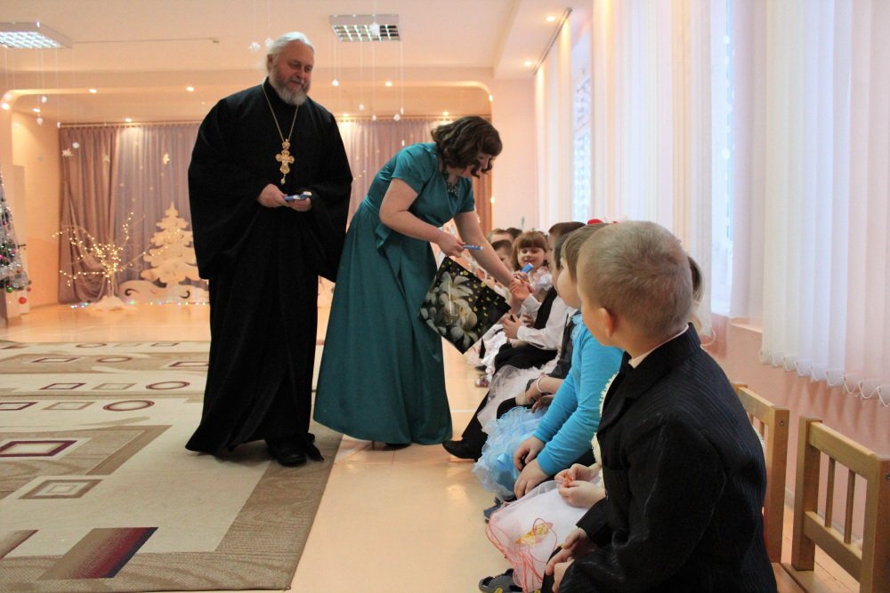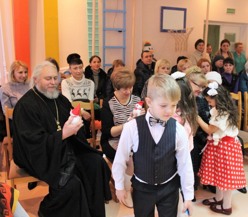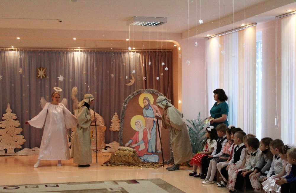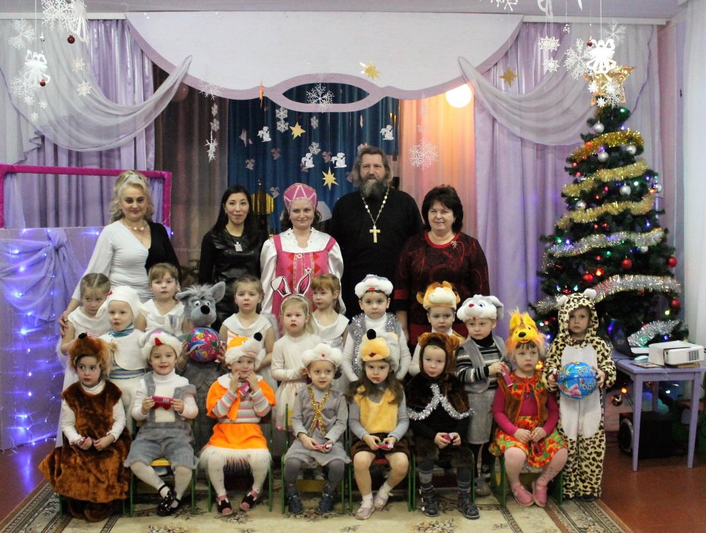 10 января рождественское представление показали своим самым любимым зрителям ребята санаторного детского сада №4. Уже с порога мы оказались в сказочном зимнем лесу, созданном творческой фантазией самих ребятишек и их родителей. Вот под ёлочкой собрались «зверята», и как в сказке, волк мирно танцевал с зайцем, а лисичка с белочкой. А мудрая сказочница Екатерина Алкександровна Ковырзина, её помощница Регина Ермековна Скорых и музыкальный руководитель Волчкова Алла Викторовна умело организовывали их веселье. Сюрпризом для ребят стала кукольная инсценировка о том, что в Рождество даже лесные звери живут дружно. И радовались ангелы, видя таких замечательных лесных жителей, и кружились в лёгком танце. Протоиерей Владимир Янчесов поздравил всех с Рождеством Христовым, поблагодарил участников и организаторов представления за замечательный праздник и вручил подарки.