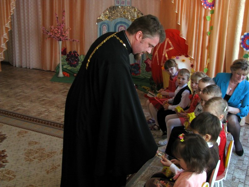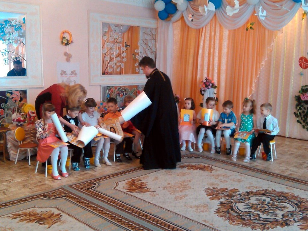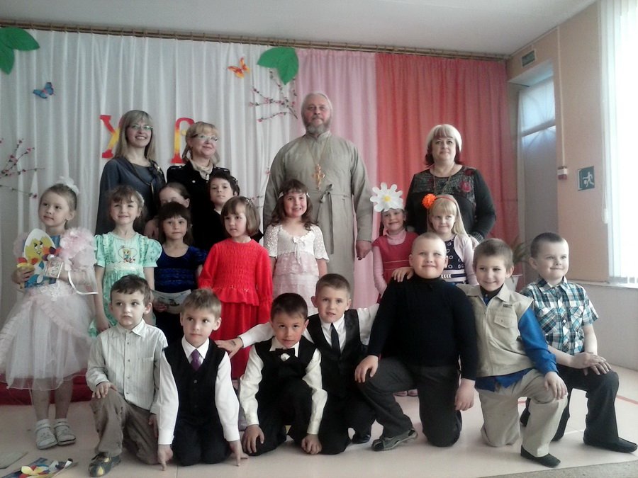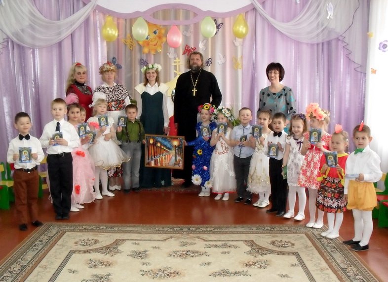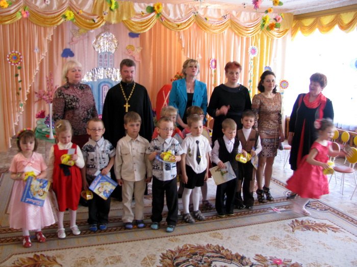 Детский сад №13 в г. Рогачеве 06 февраля отпраздновал свою 25-ю годовщину. Сплоченный коллектив, под мудрым управлением заведующего Кондратенко Елены Дмитриевны делает все возможное для возрастания и воспитания своих маленьких питомцев. Не остаются в стороне и вопросы духовного воспитания. С 2007 года в этом учреждении дети воспитываются на основах православной культуры белорусского народа. Среди приглашенных на юбилей гостей был и настоятель прихода храма святого благоверного князя Александра Невского протоиерей Алексей Смотрицкий. После великолепного праздничного концерта он поздравил коллектив детского сада, пожелал успехов и радости в их не легком, но таком нужном и благородном труде и от Прихода храма преподнес в подарок небольшую библиотечку духовной литературы для детей, персонала и родителей.