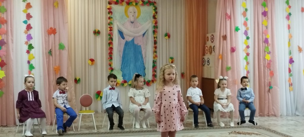 Наступила золотая осень, и вместе с ней пришел светлый и добрый праздник – Покров Пресвятой Богородицы. 14 октября в уютном зале детского сада №6 г.п.Корма звучало музыкальное представление, посвященное Небесной Заступнице и Дню матери.